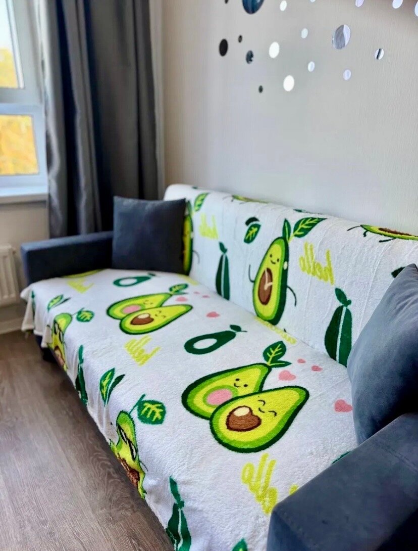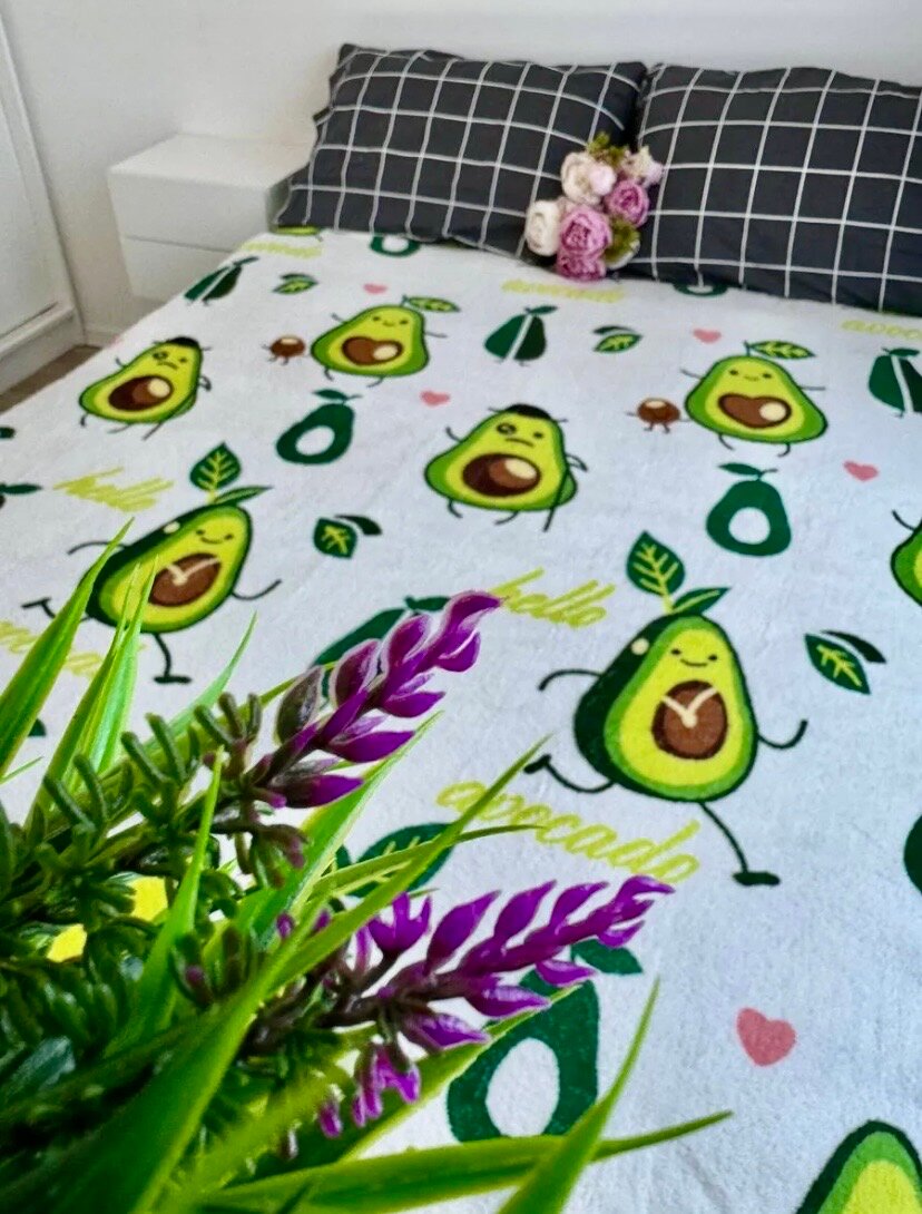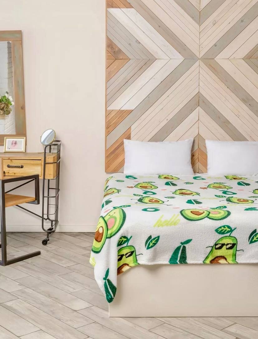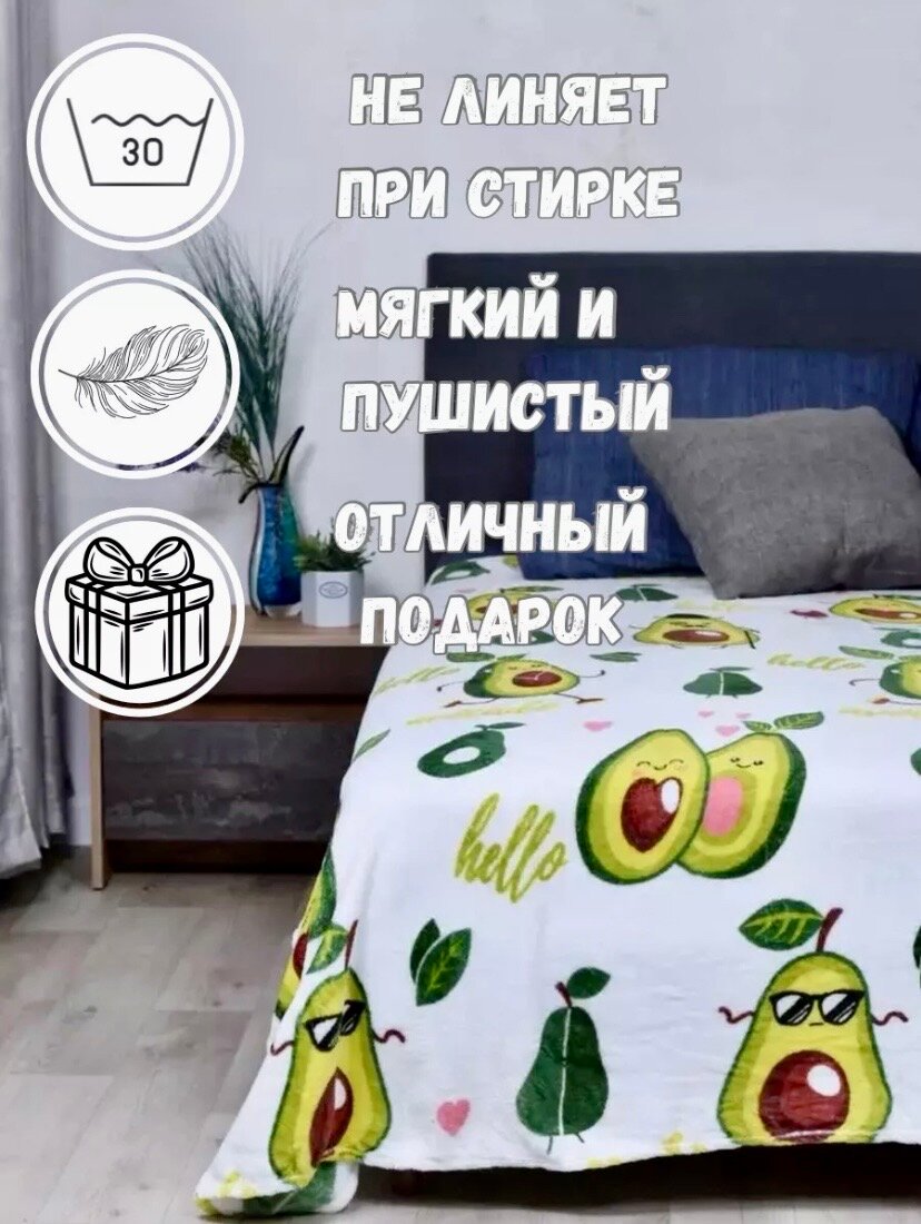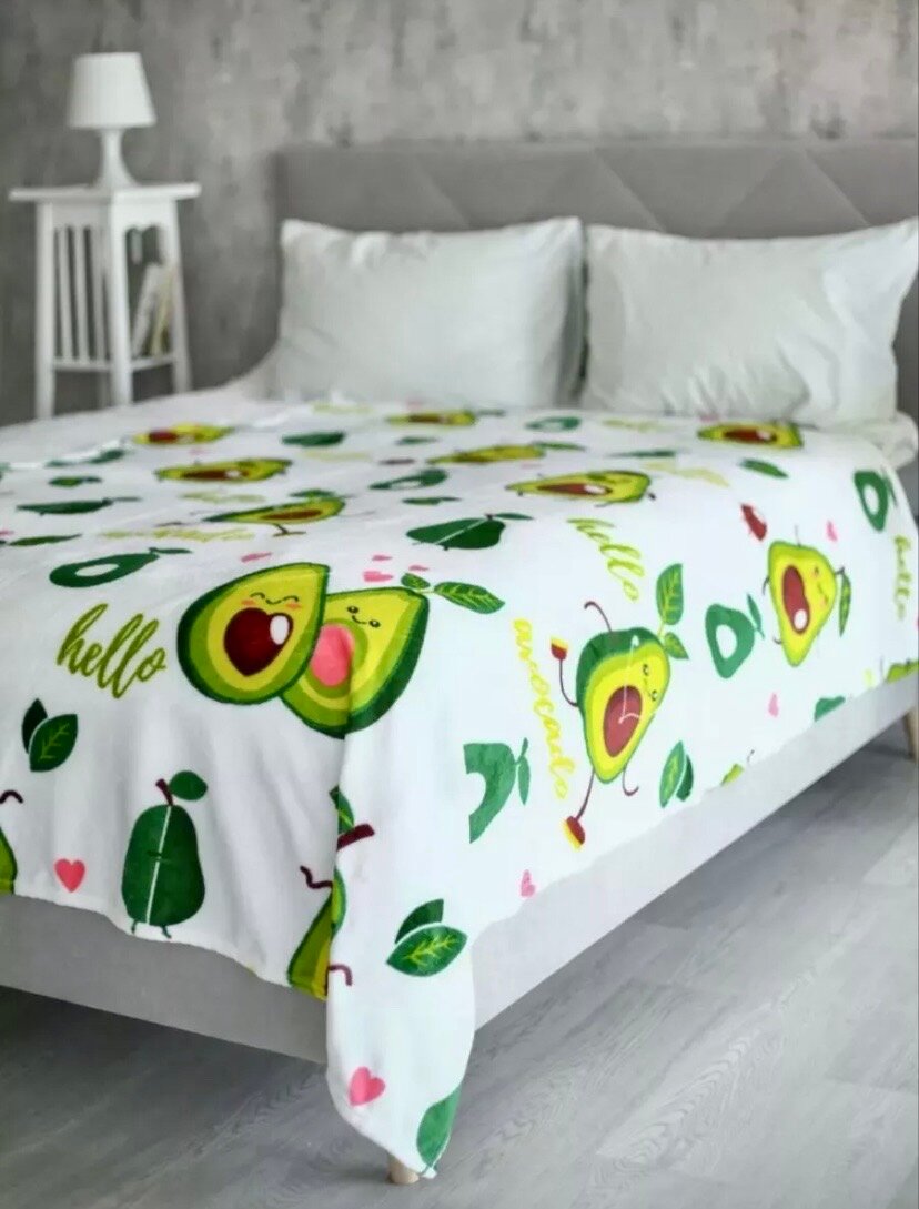 Плед "Авокадо", 180x200 см мягкий, тонкий, пушистый плед-покрывало интересное: