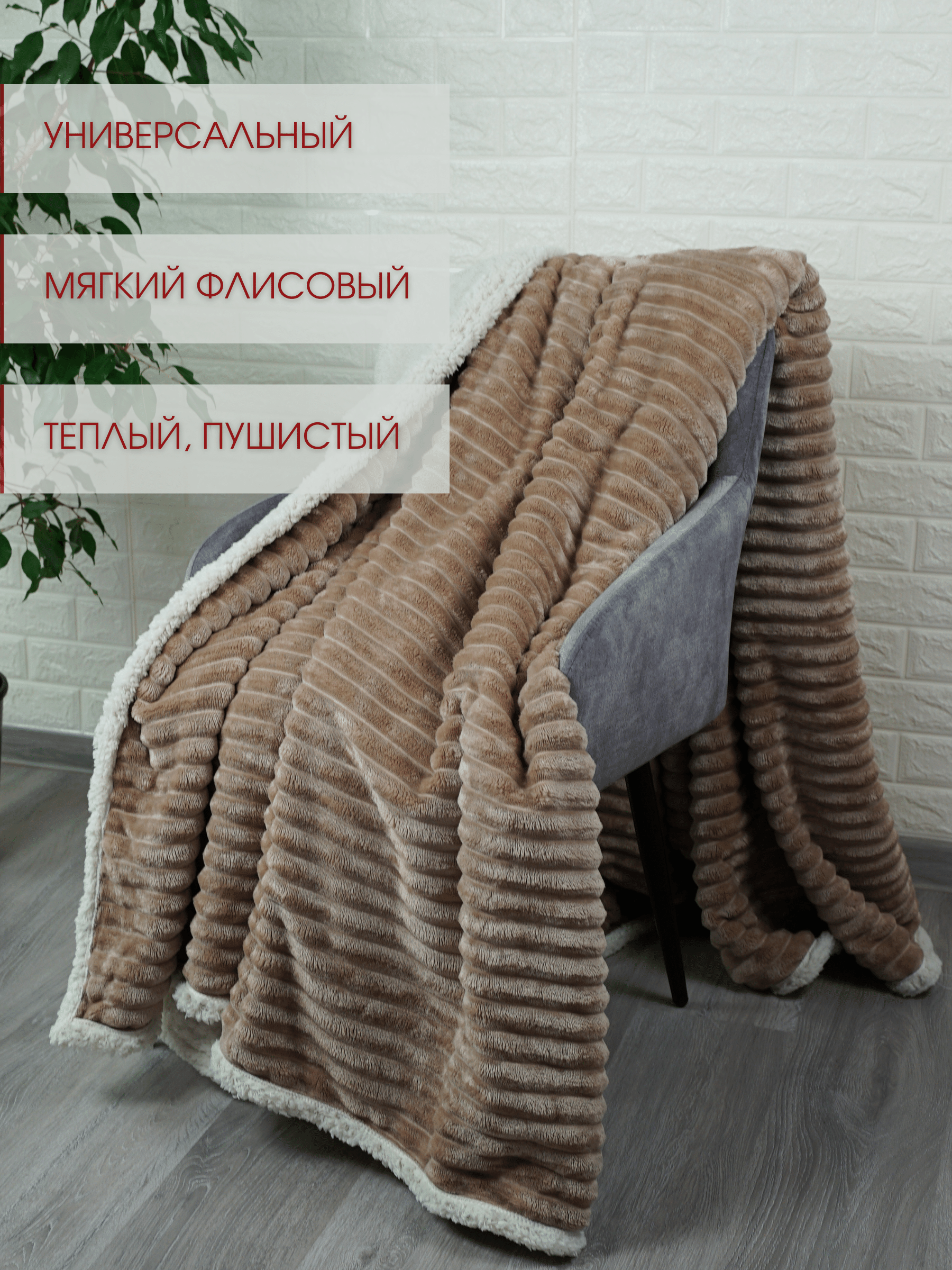 Плед на кровать двусторонний с мехом Лондон 01 150х220 см