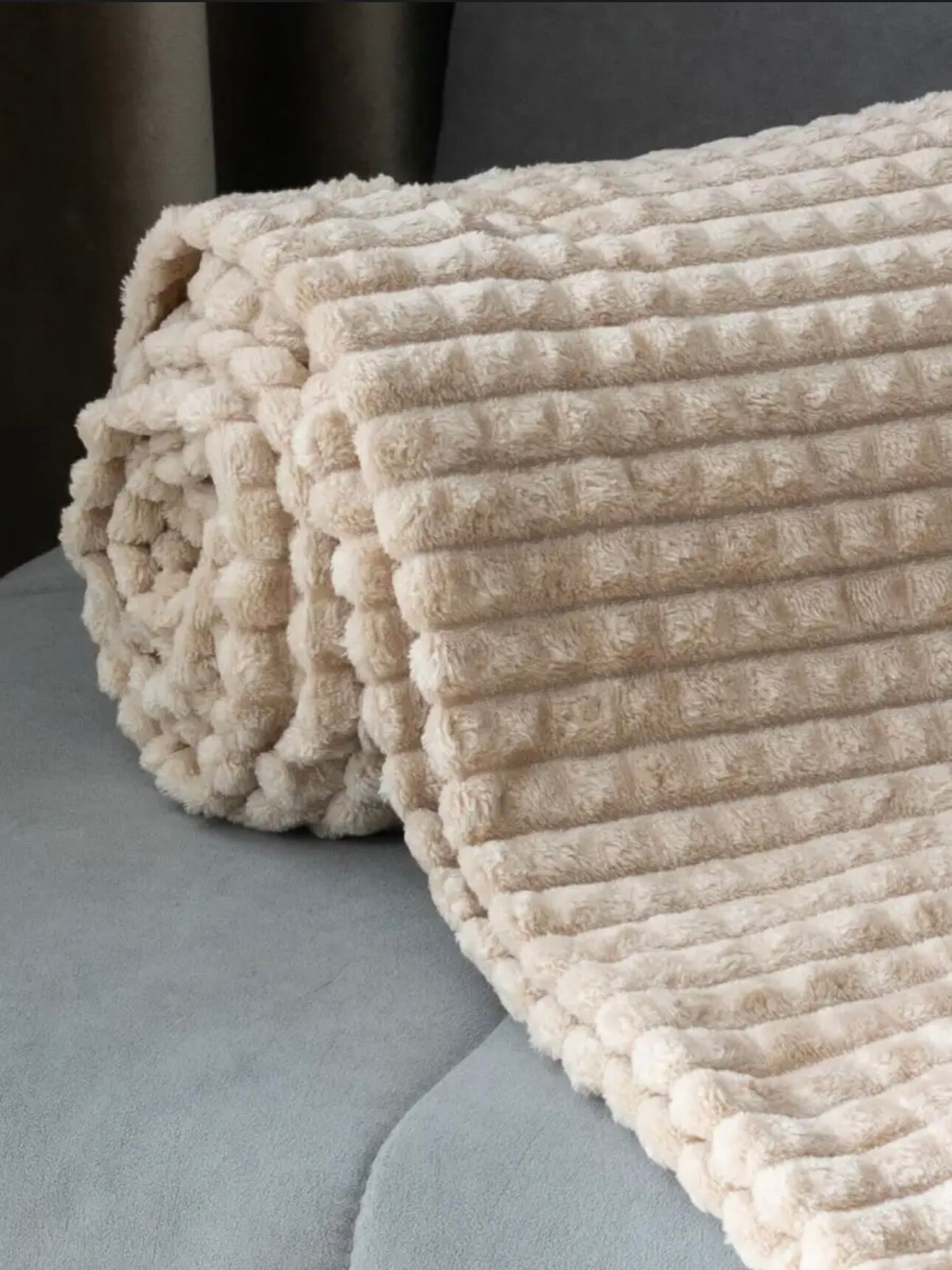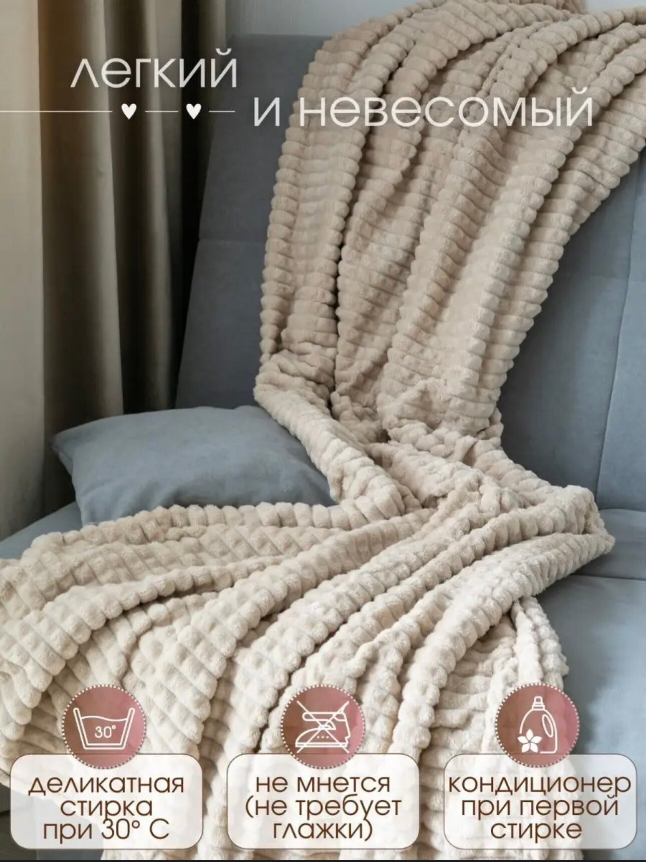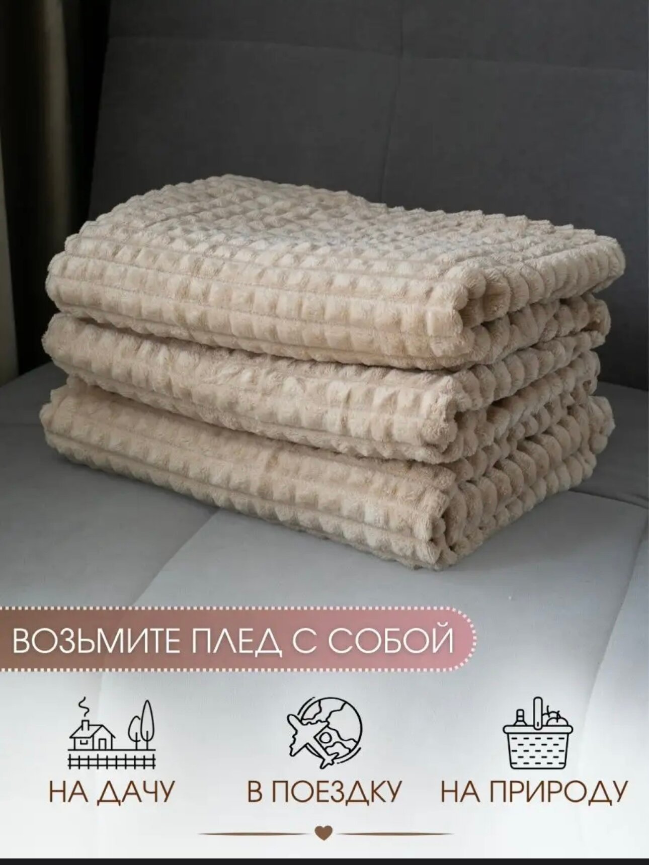 Плед-покрывало кубик Велсофт 200 x 220 см, евро флисовый бежевый интересное: