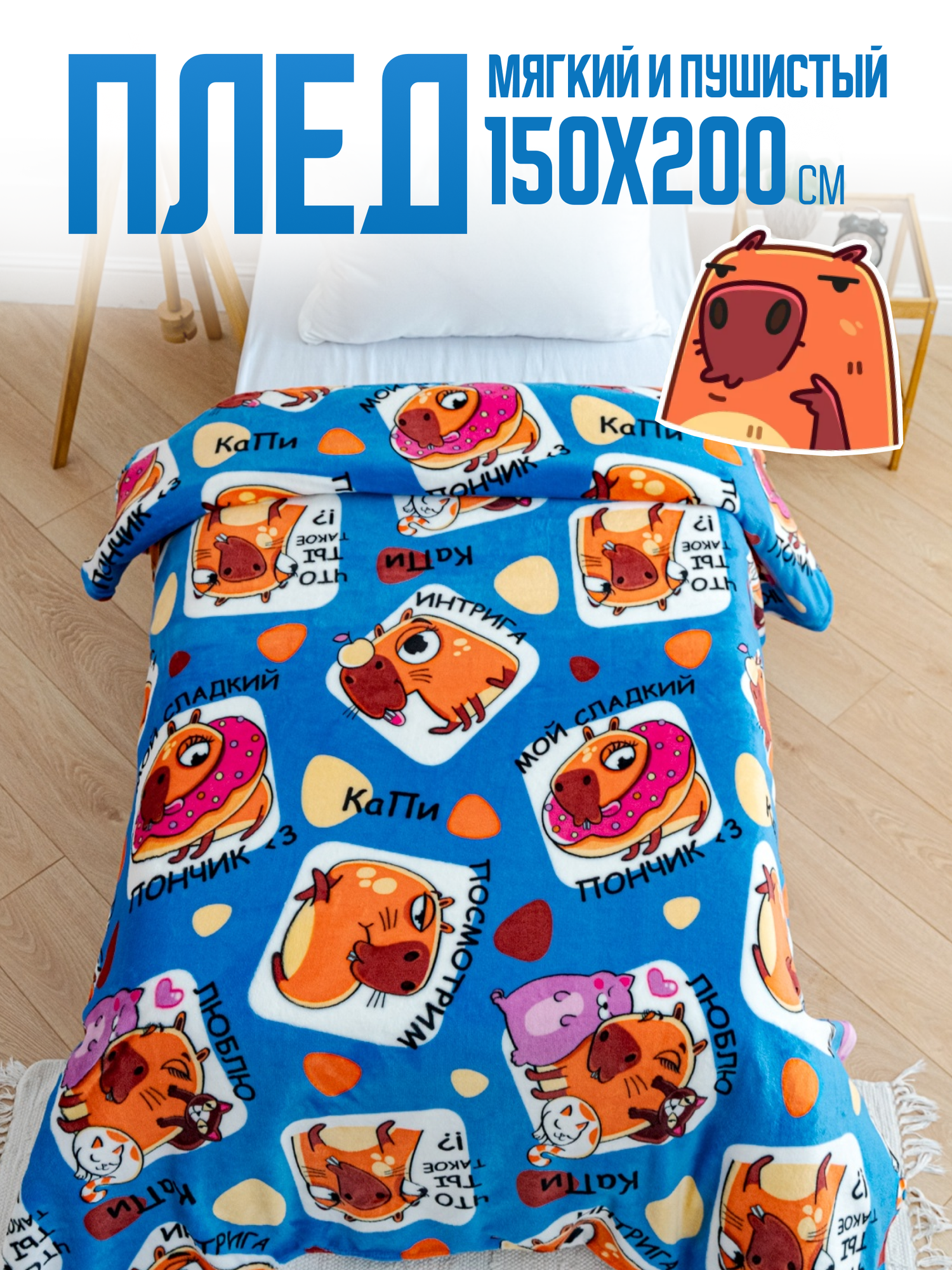 Плед 150х200 Павлина Капибара интересное: