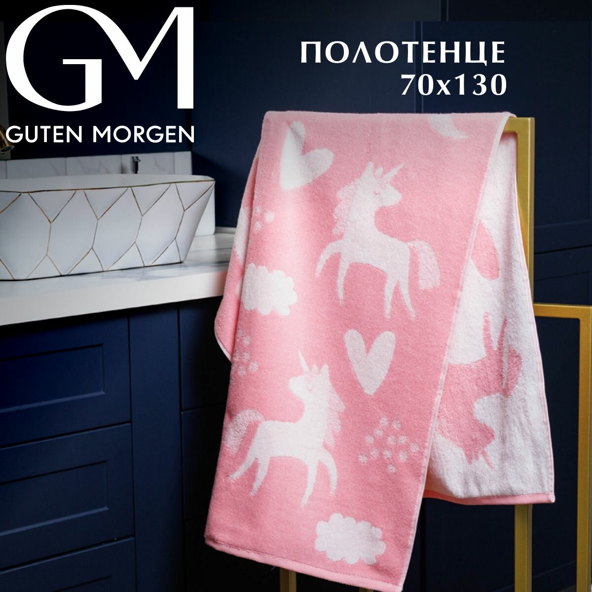 Купить Полотенце махровое, Guten Morgen 1 шт. 70х130, Юникорн, хлопок 100%, 450 г/м2