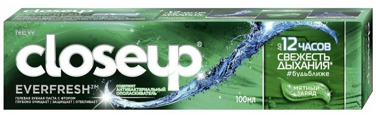 Ниже Вы можете прочитать отзывы на CLOSEUP everfresh зубная паста с антибактериальным ополаскивателем мятный заряд 100 мл, ознакомится с подробными характеристиками, посмотреть интересные обзоры и фотографии на CLOSEUP everfresh зубная паста с антибактериальным ополаскивателем мятный заряд 100 мл.
