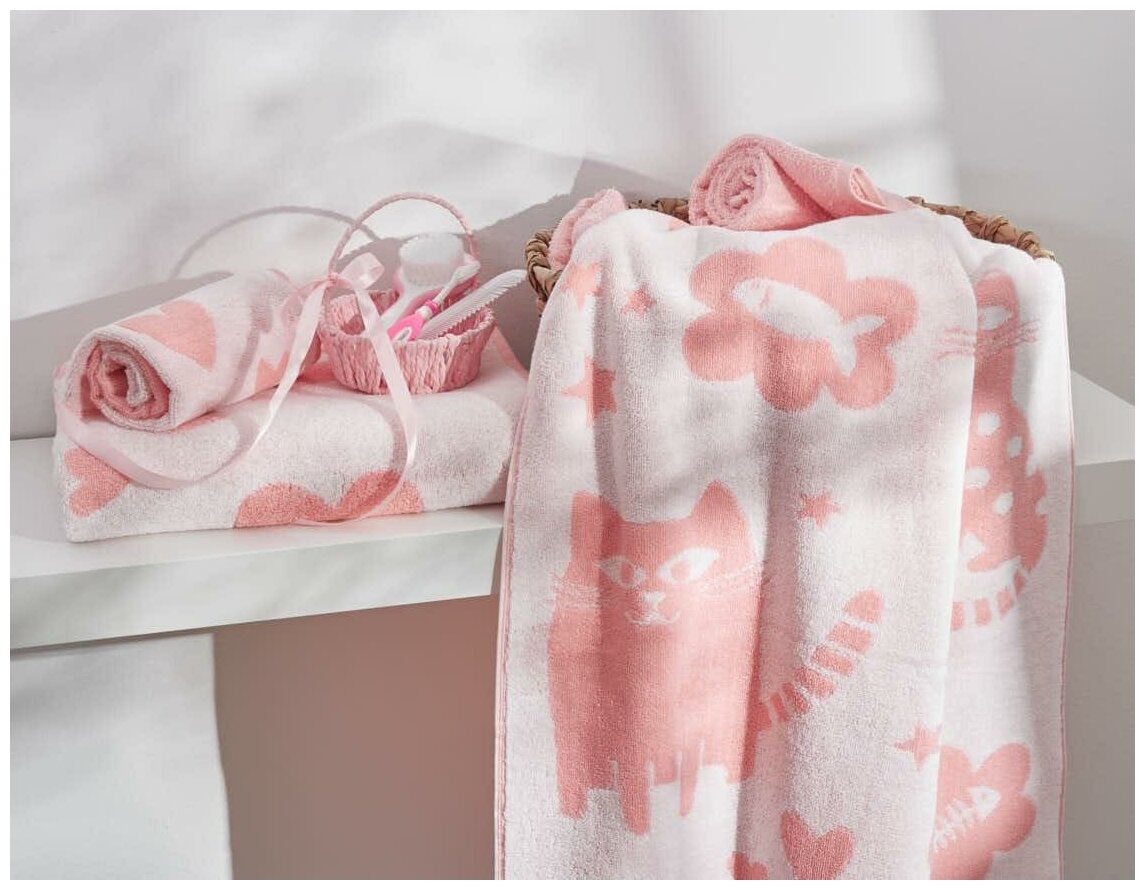 Полотенце махровое, Guten Morgen, 70х130 см, рис. Кэт лав, цвет: Розовый
