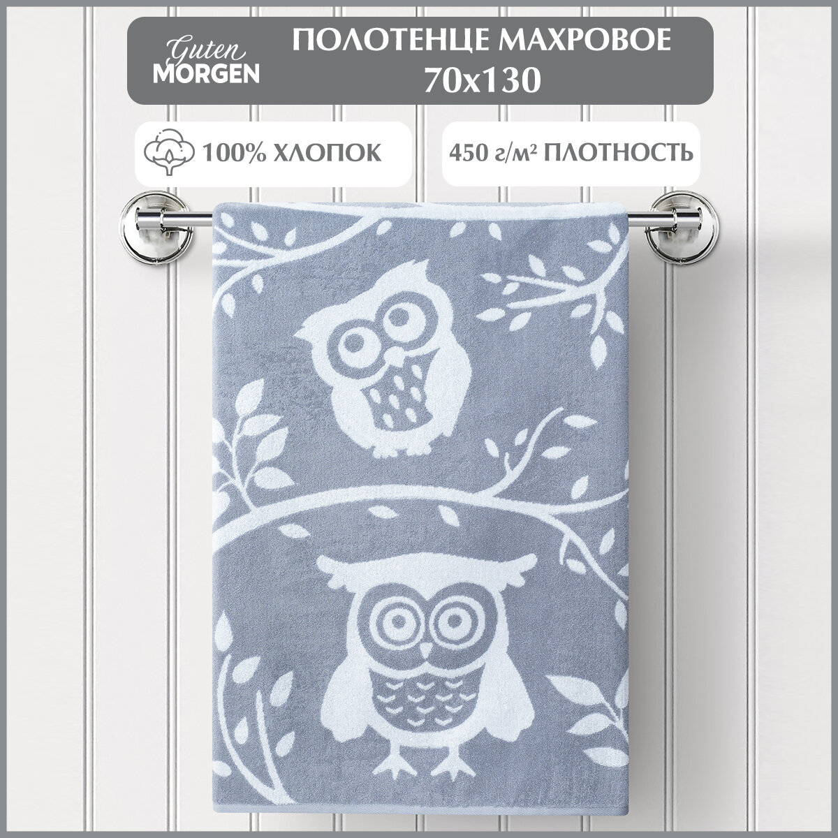 Полотенце махровое, Guten Morgen, 70х130 см, рис. Висдом