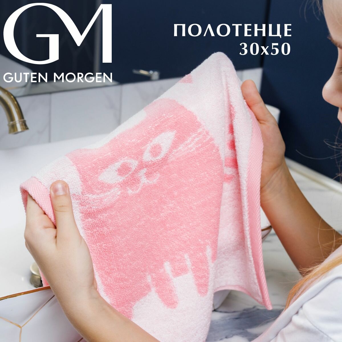 Полотенце махровое, Guten Morgen, 50х90 см, рис. Кэт лав, цвет: Розовый