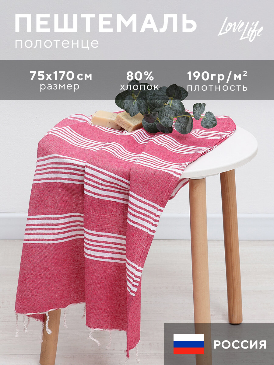 СохранитьПолотенце Пештемаль LoveLife Boston, цв. розовый, 75х170 см, 80% хл, 20% пэ, 190 г/м2 интересное: