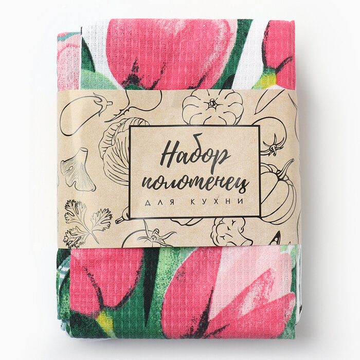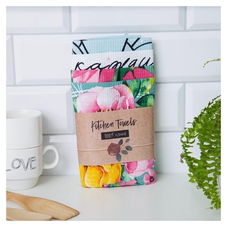 Набор кухонных полотенец Доляна Hello spring 35х60 см -4 шт, 100% хлопок, вафля 160 г/м2