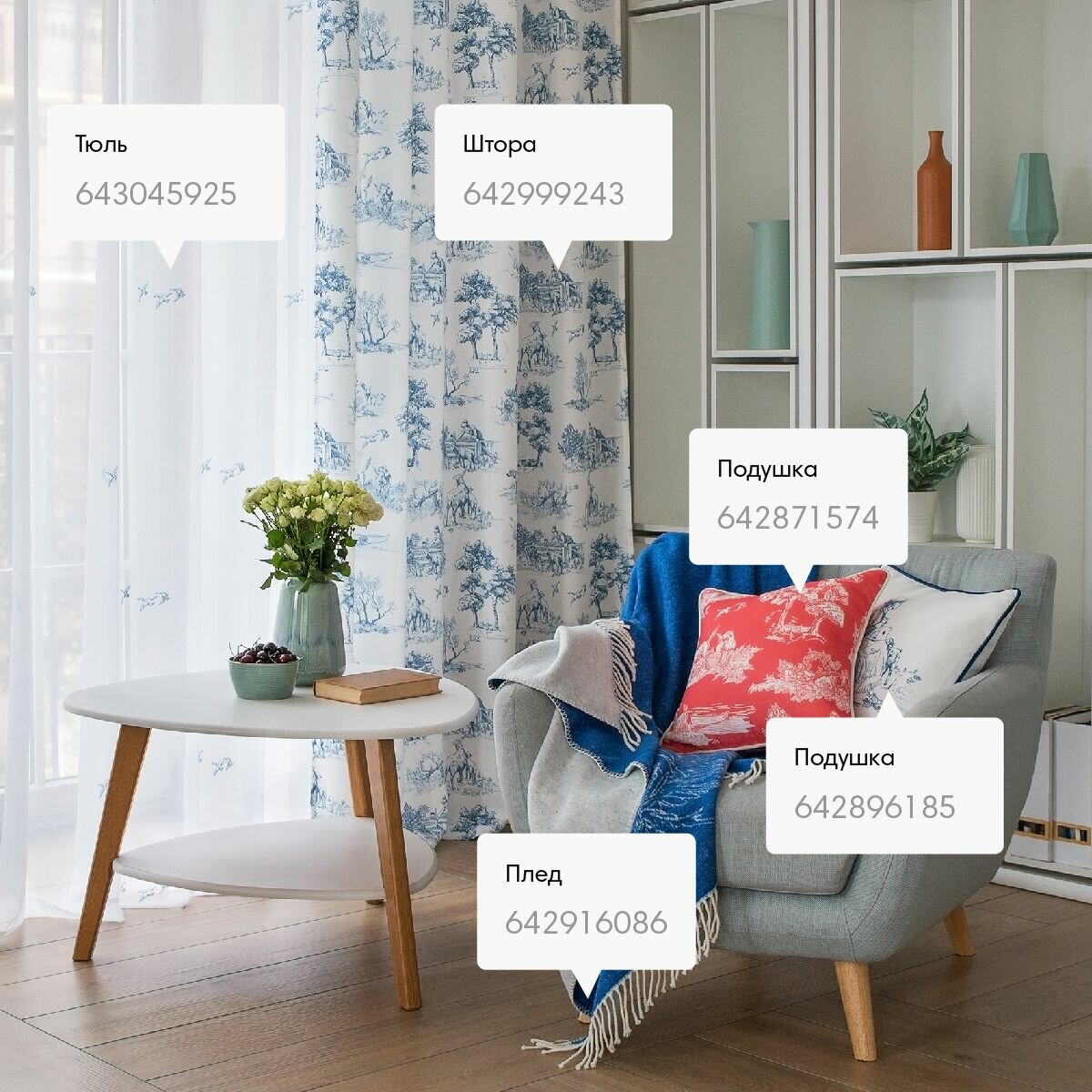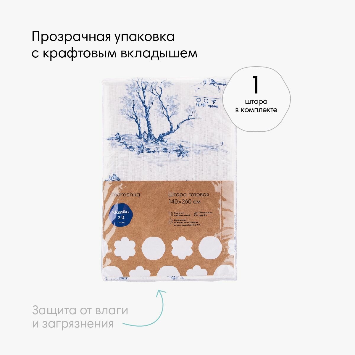 | Комплектация | Штора портьерная Klassika бело-синяя 140x260 см |