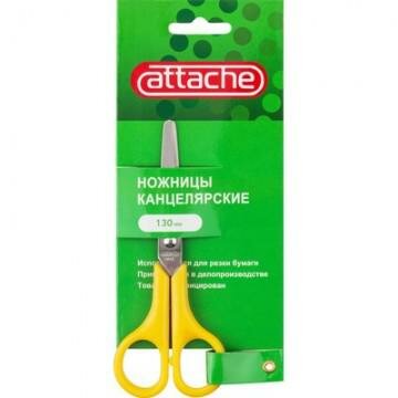 Ножницы Attache 130 мм с пластиковыми ручками, цвет желтый