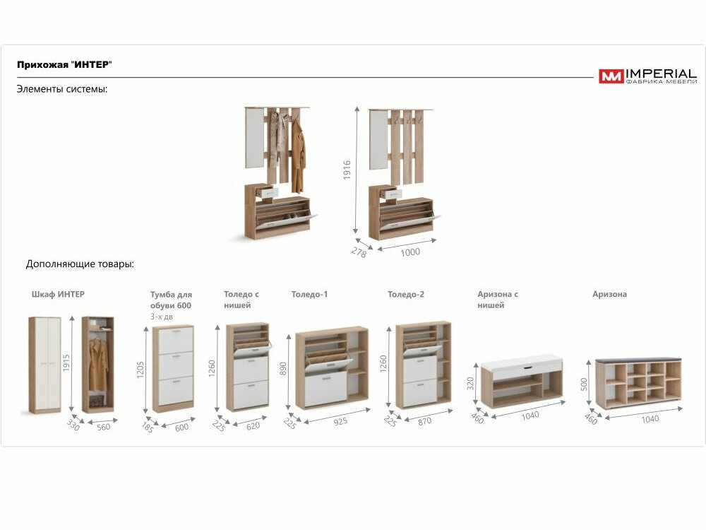 | Дополнительная информация | Этот товар входит в комплект Набор мебели для прихожей Интер |