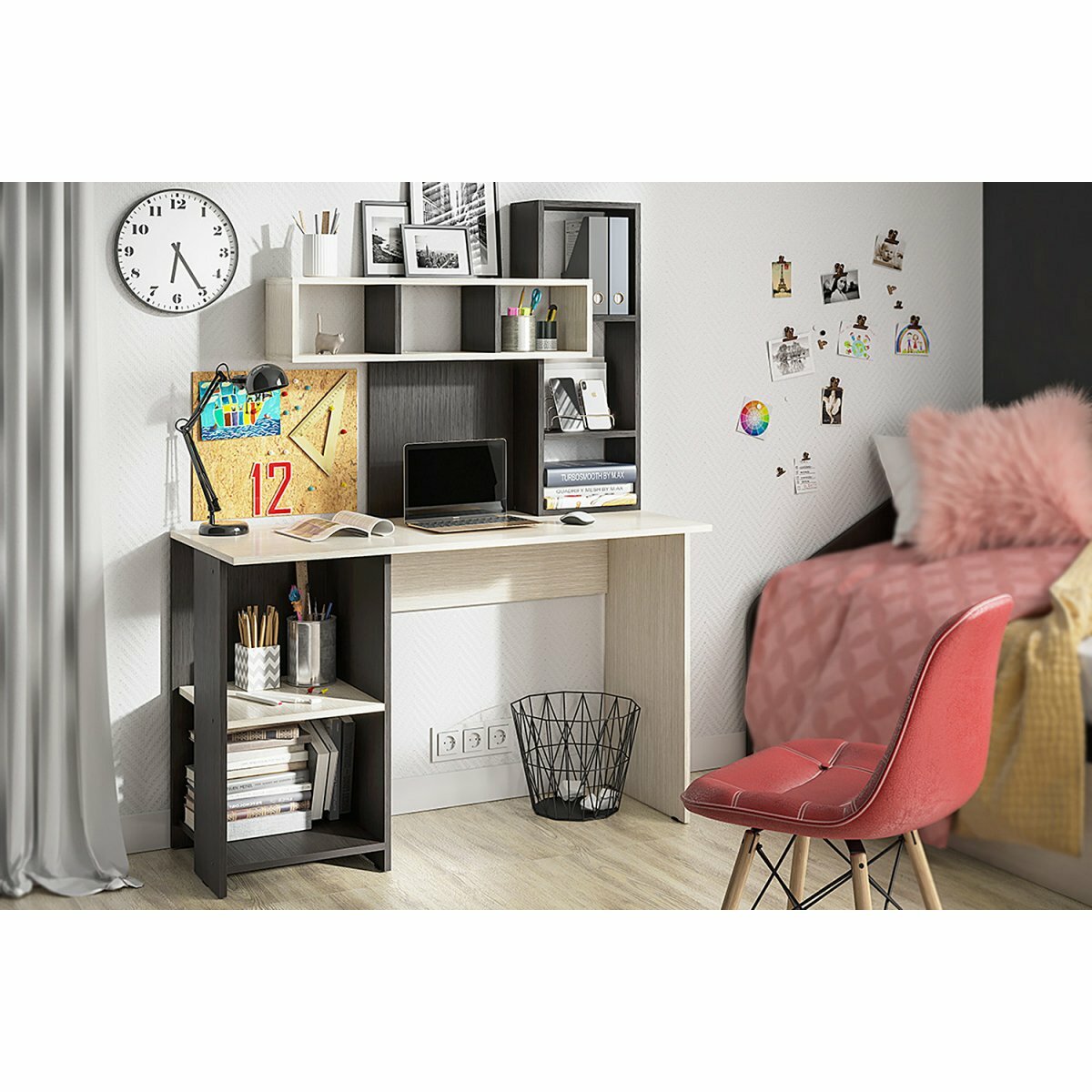 Стол компьютерный Интерьер-Центр Олимп, белый/дуб светлый, 155х120х50 см, надстройка