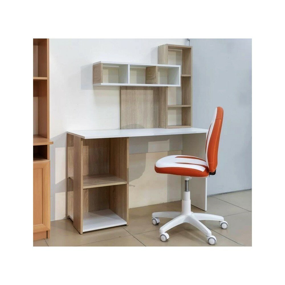 Стол компьютерный Интерьер-Центр Олимп, белый/дуб светлый, 155х120х50 см, надстройка