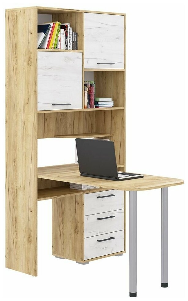 Стол компьютерный трансформер с полками для хранения КС-49 Крафт золотой, Пирамида