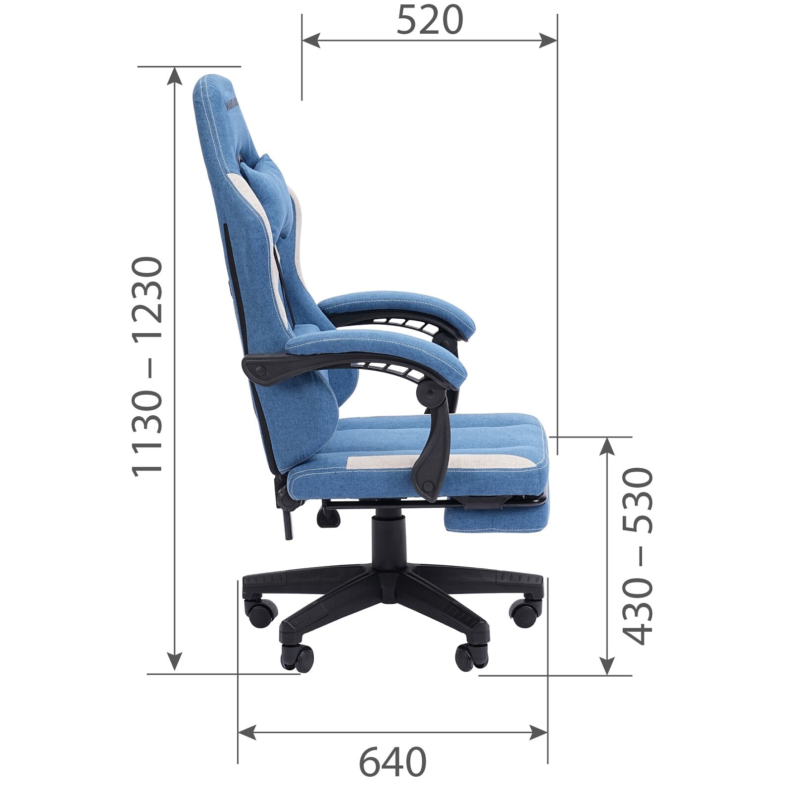 Игровое компьютерное кресло CHAIRMAN СН26, ткань, голубой с выдвижной подставкой для ног