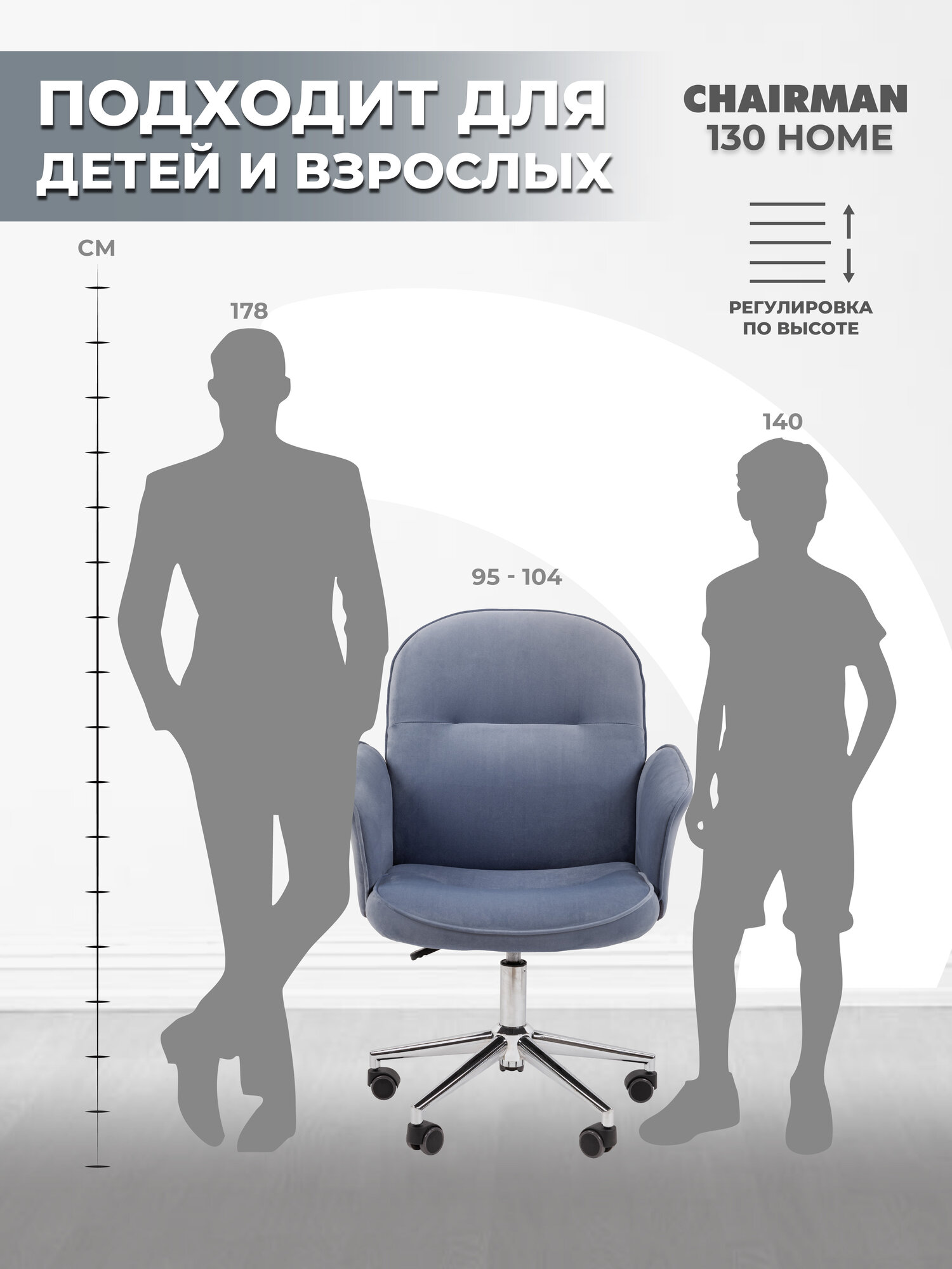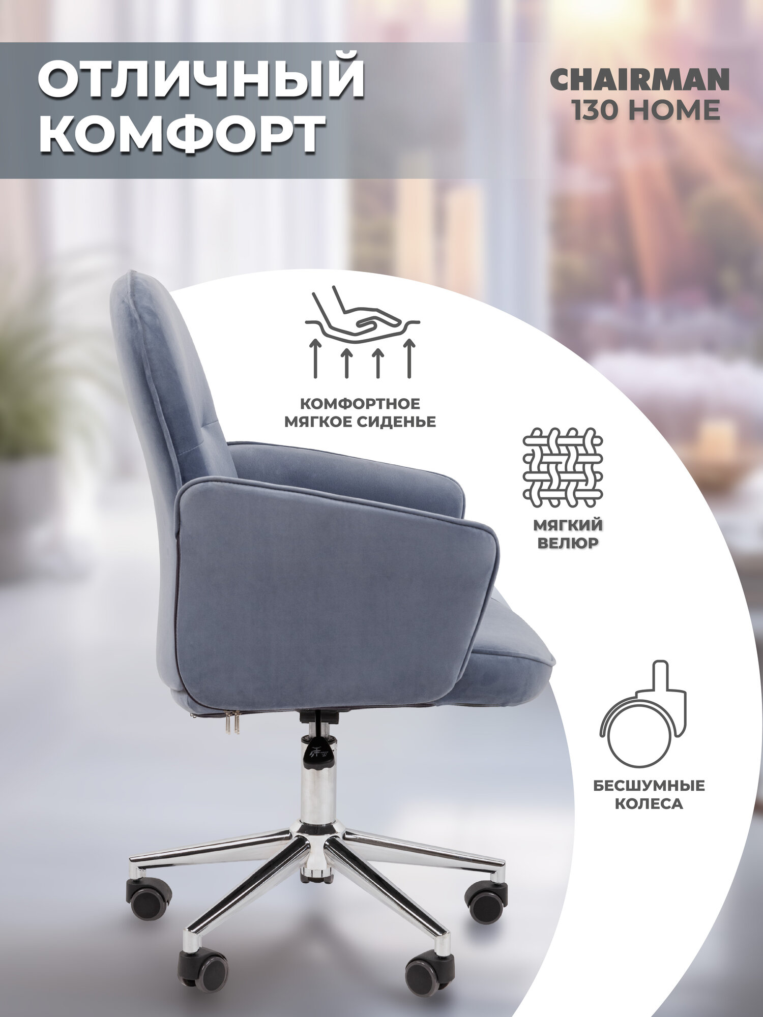 Компьютерное кресло CHAIRMAN HOME 130, велюр, голубой