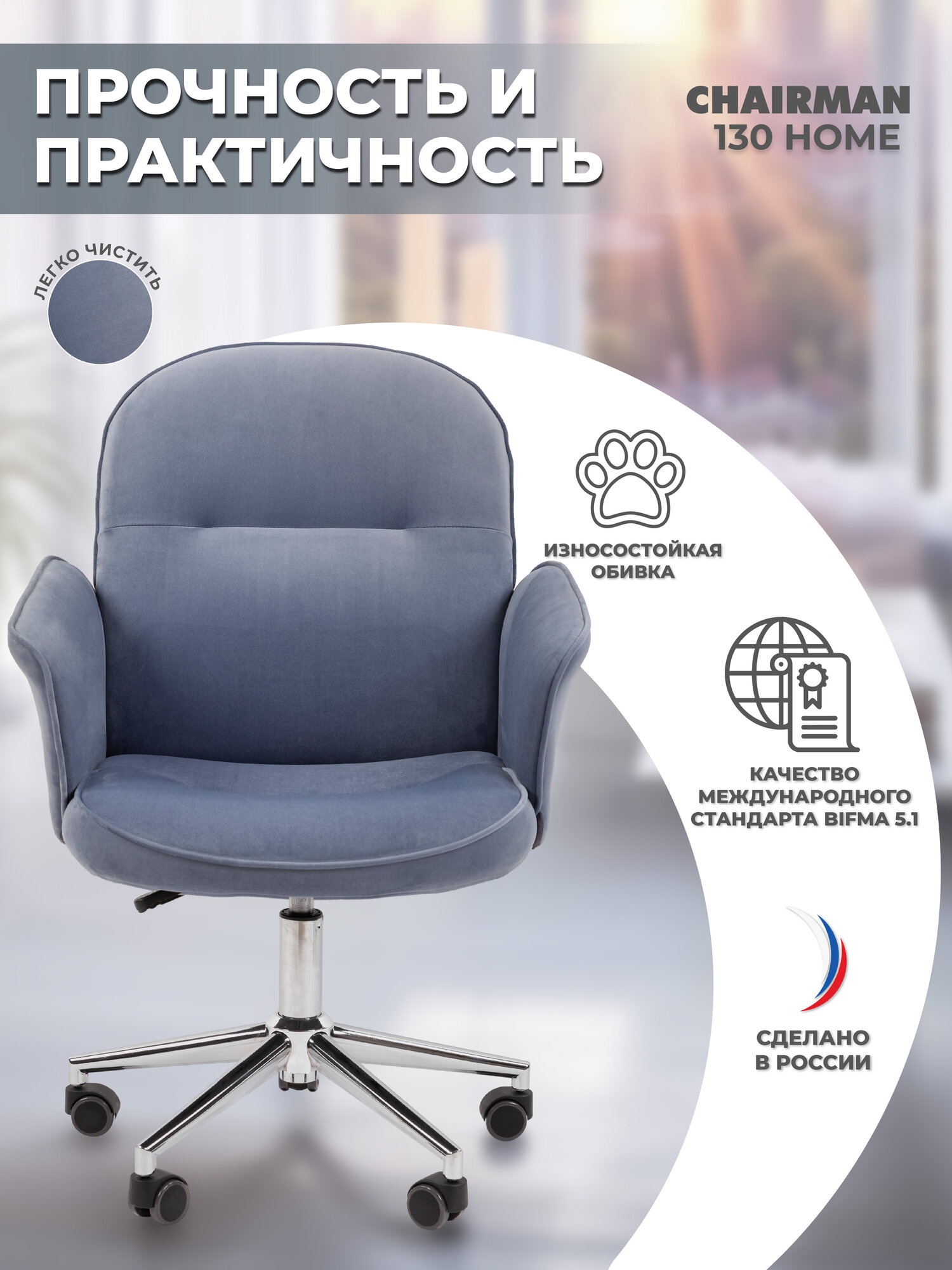 Компьютерное кресло для дома и офиса CHAIRMAN HOME 130, ткань велюр, серый