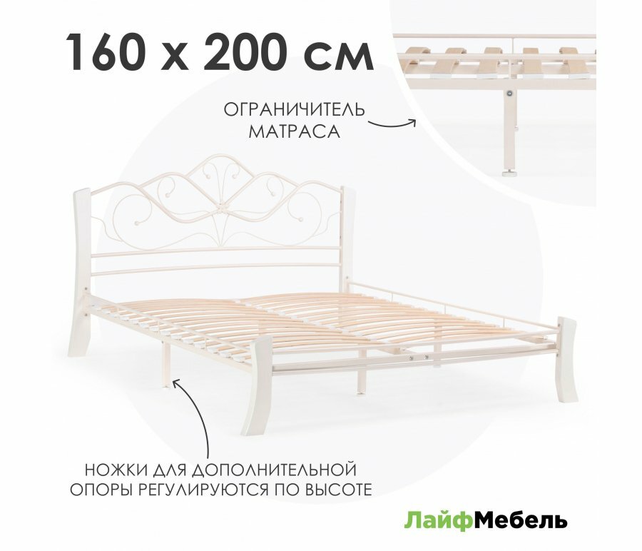 Двуспальная кровать Лайфмебель Фади, 160х200, белая, кованая