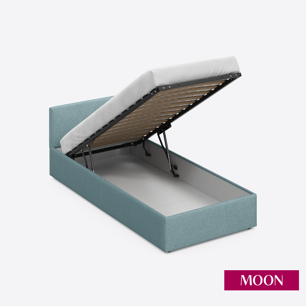 СохранитьКровать односпальная с подъемным механизмом, MOON FAMILY 1250, размер 90х200 см, рогожка бирюзовая. Ортопедическое основание в комплекте интересное: