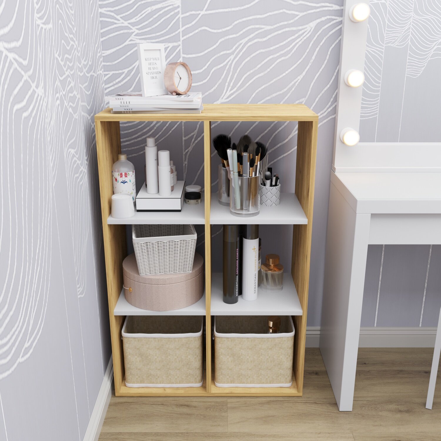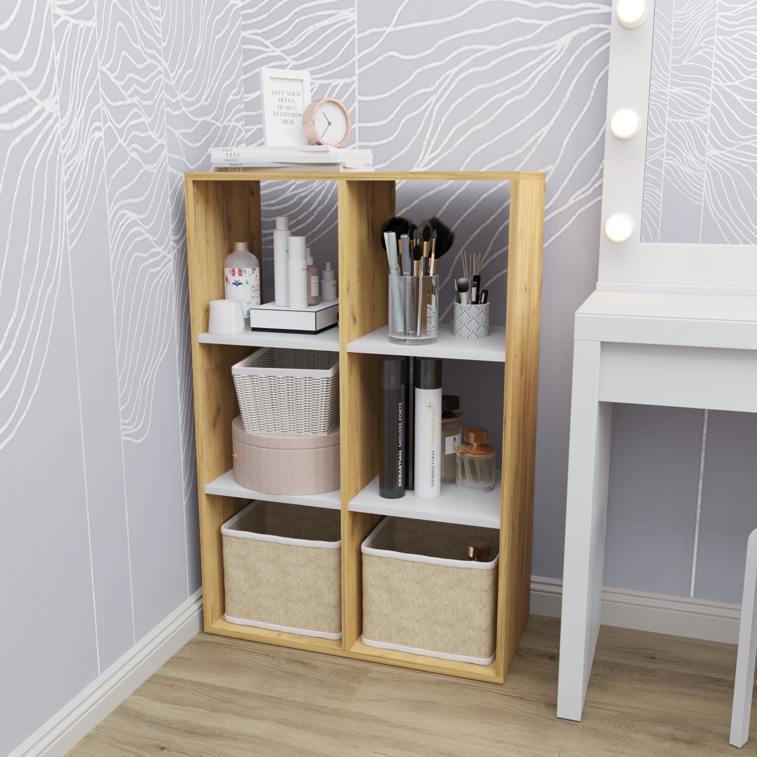 Стеллаж Velardy кубикус, 35x32x69см, белый+дуб крафт золотой