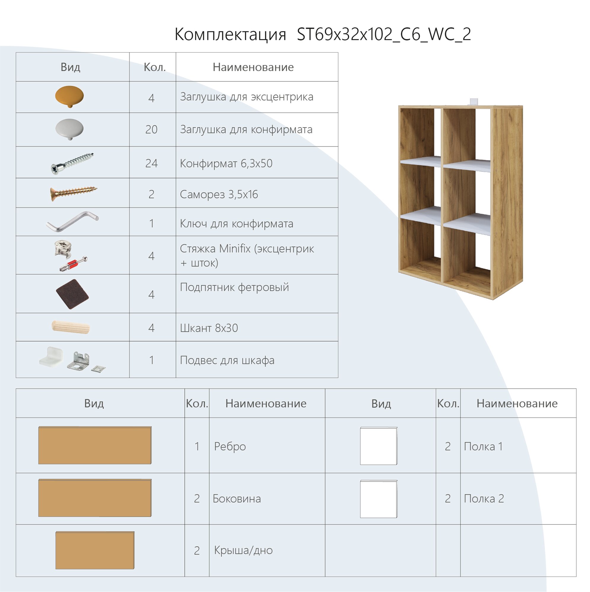 | Комплектация | в комплектацию входит: детали, комплект фурнитуры и инструкция по сборке. |