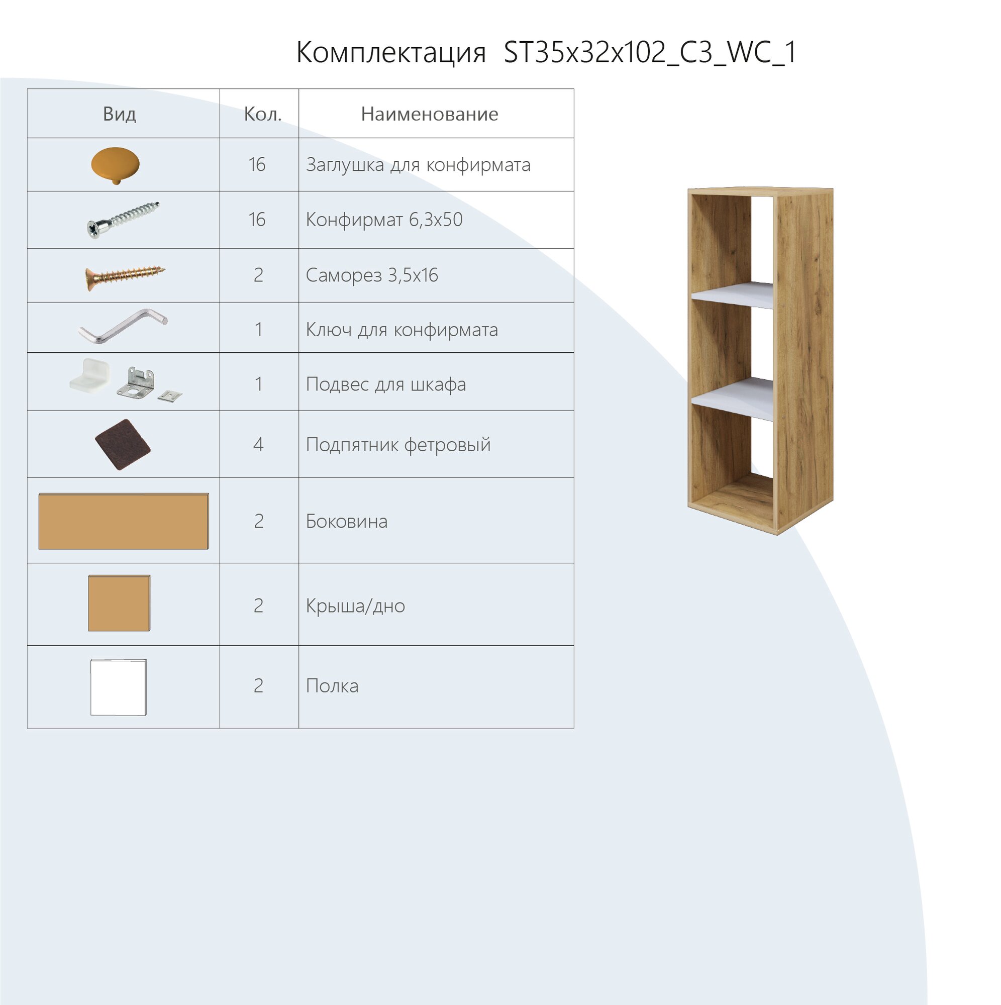 Купить Стеллаж Velardy кубикус, 35x32x102см, белый+дуб крафт золотой