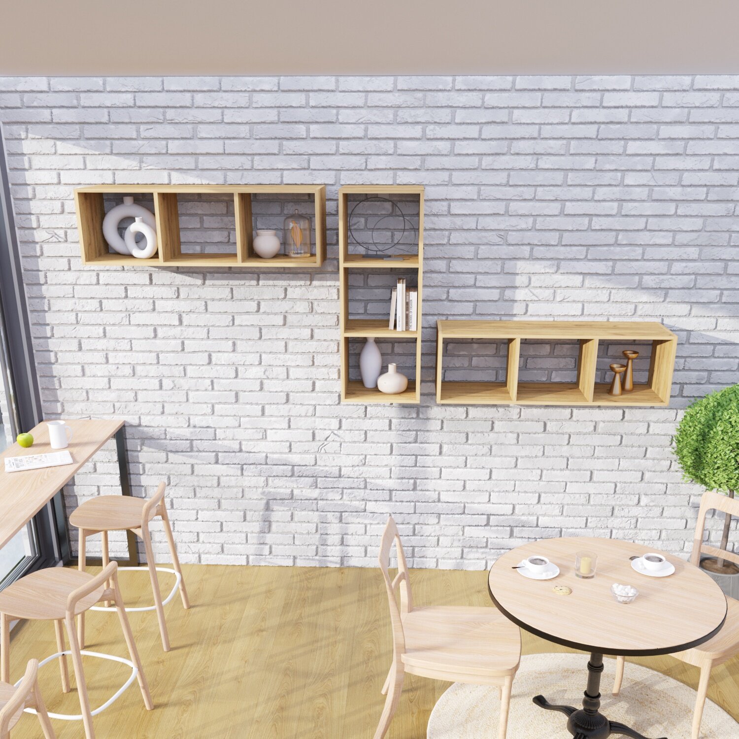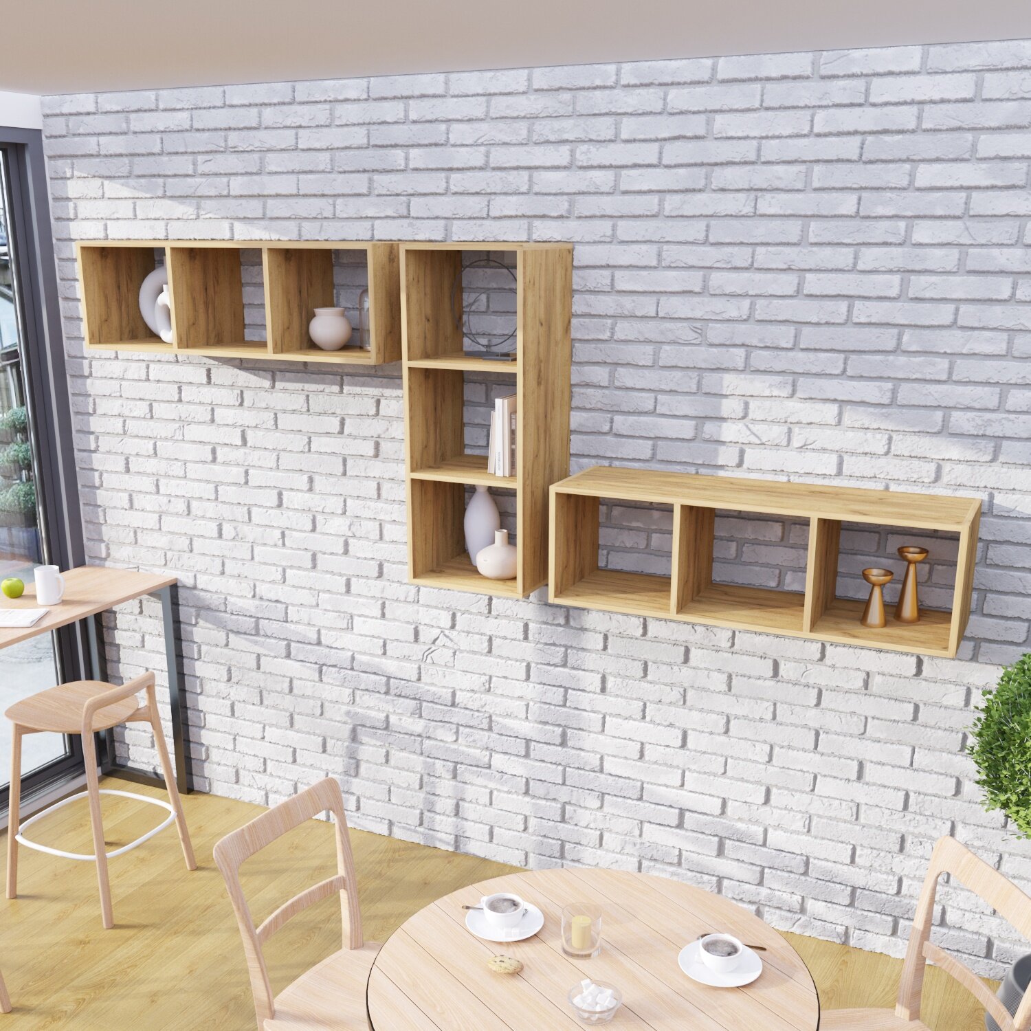 Стеллаж Velardy кубикус, 102x102x32см, белый+дуб крафт золотой