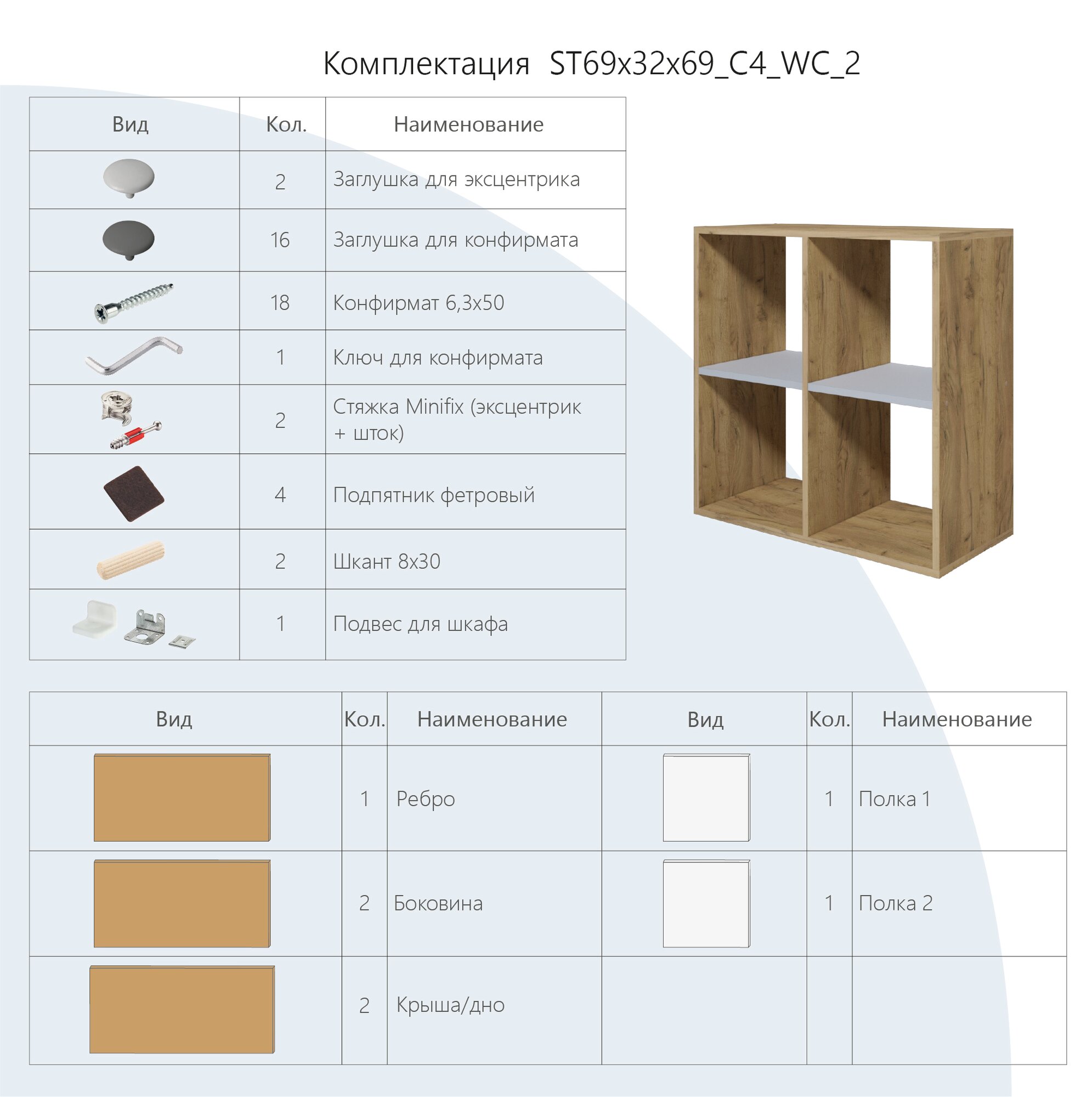 | Комплектация | в комплектацию входит: детали, комплект фурнитуры и инструкция по сборке. |