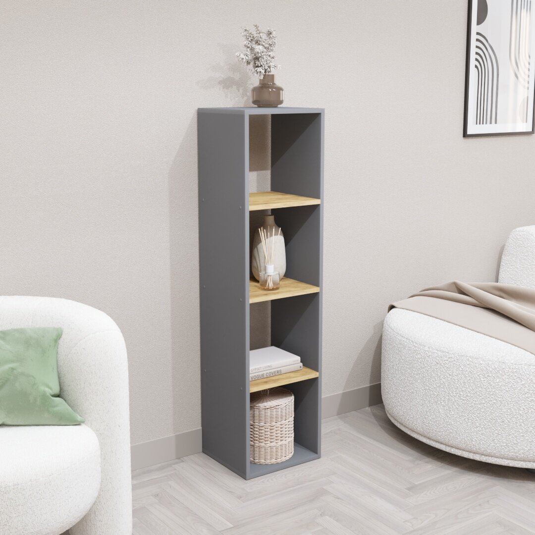 Купить Стеллаж Velardy кубикус, 35x32x136см, серый+дуб крафт золотой