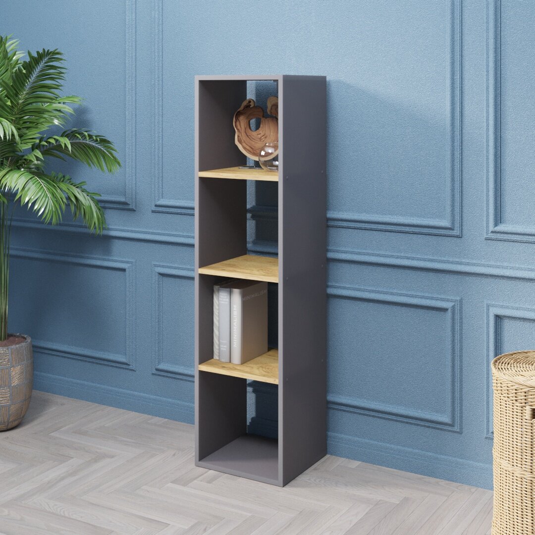 Стеллаж Velardy кубикус, 102x32x102см, серый+дуб крафт золотой