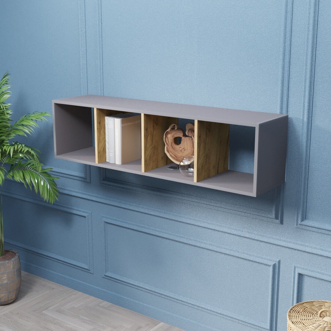 Стеллаж Velardy кубикус, 102x9x32см, серый+дуб крафт золотой