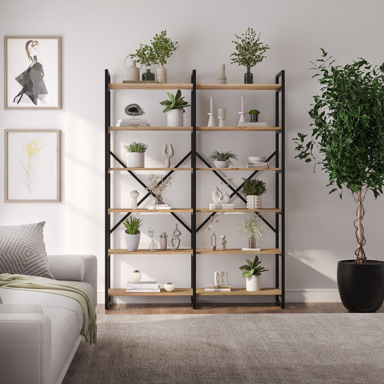 Стеллаж лофт BRUNO DOUBLE 6 полок (180х134х34см) Дуб Канзас