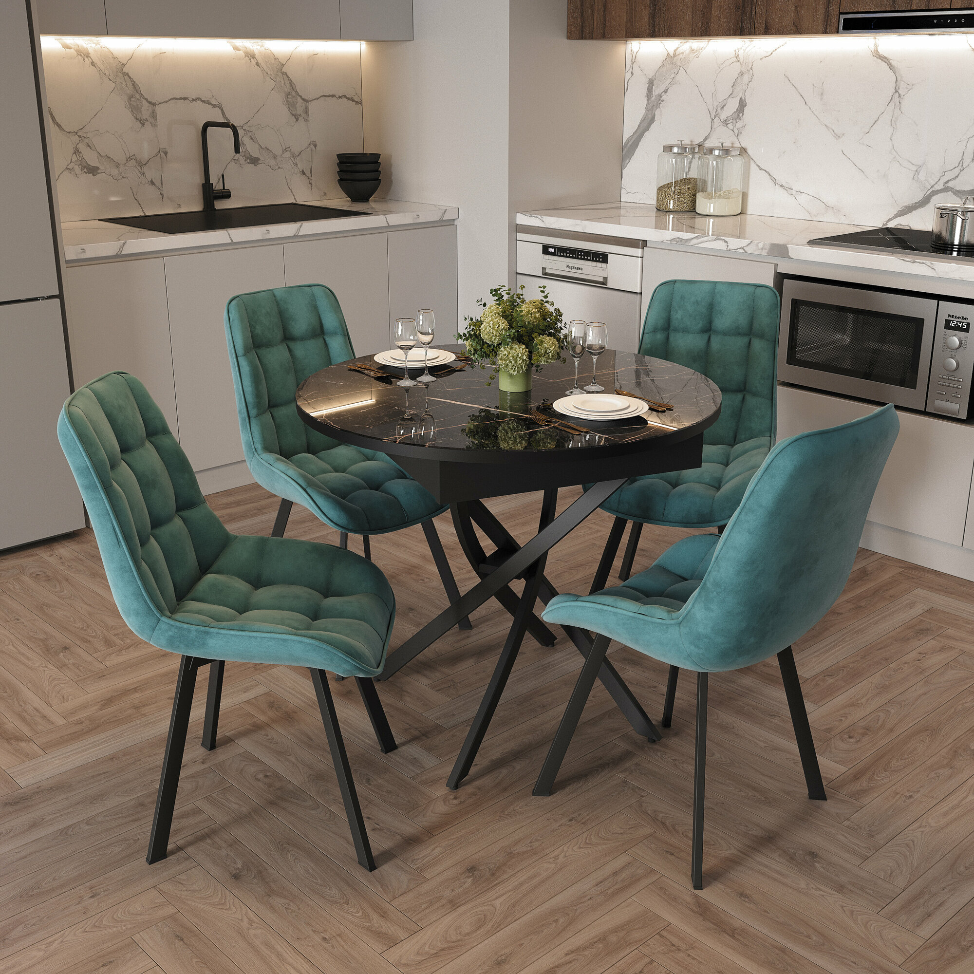 Стол раздвижной со стеклом ГРАЦИЯ-2 89/120х89см, мрамор черный, черный, RI-COM интересное: