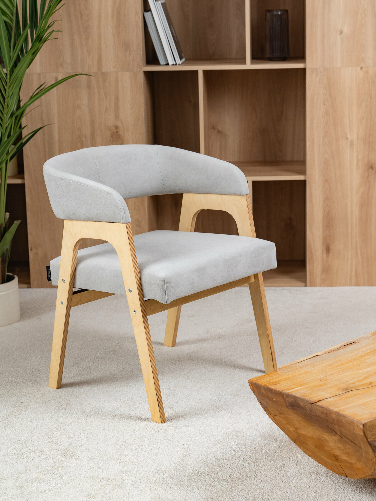 Стул кресло ZASIDELIS кайф мягкий для кухни дома и офиса светло-серый/натуральный, из велюра, 56х62х72 см, до 130кг