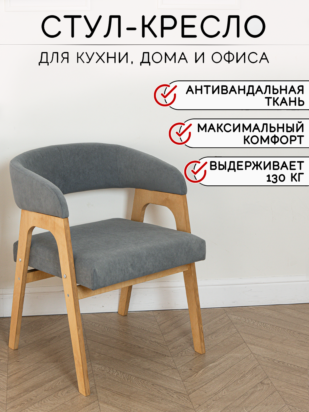 Стул ZASIDELIS кайф мягкий для кухни дома и офиса, графитовый ноги натуральное масло 56х62х72 см, до 130кг