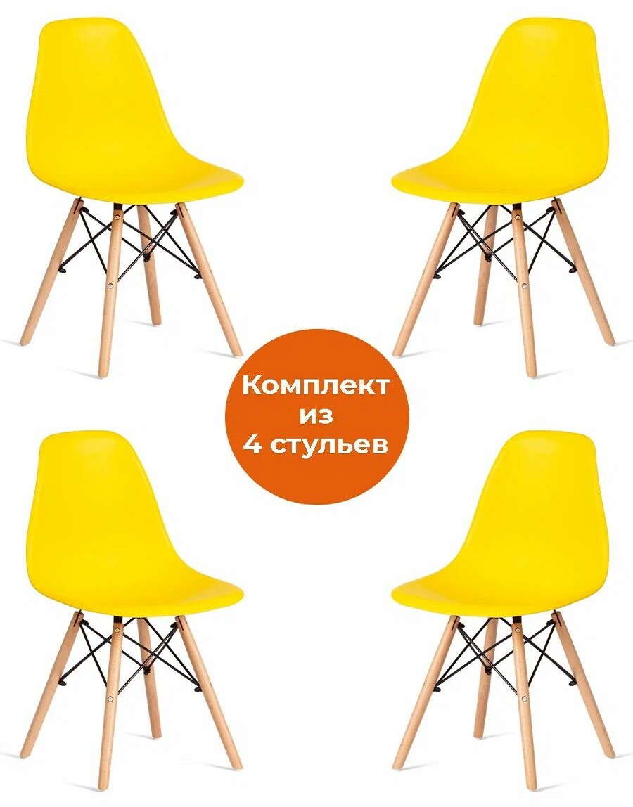 Стулья для кухни комплект TetChair CINDY (EAMES) (mod. 1801), пластик, дерево, желтый, 4 шт.