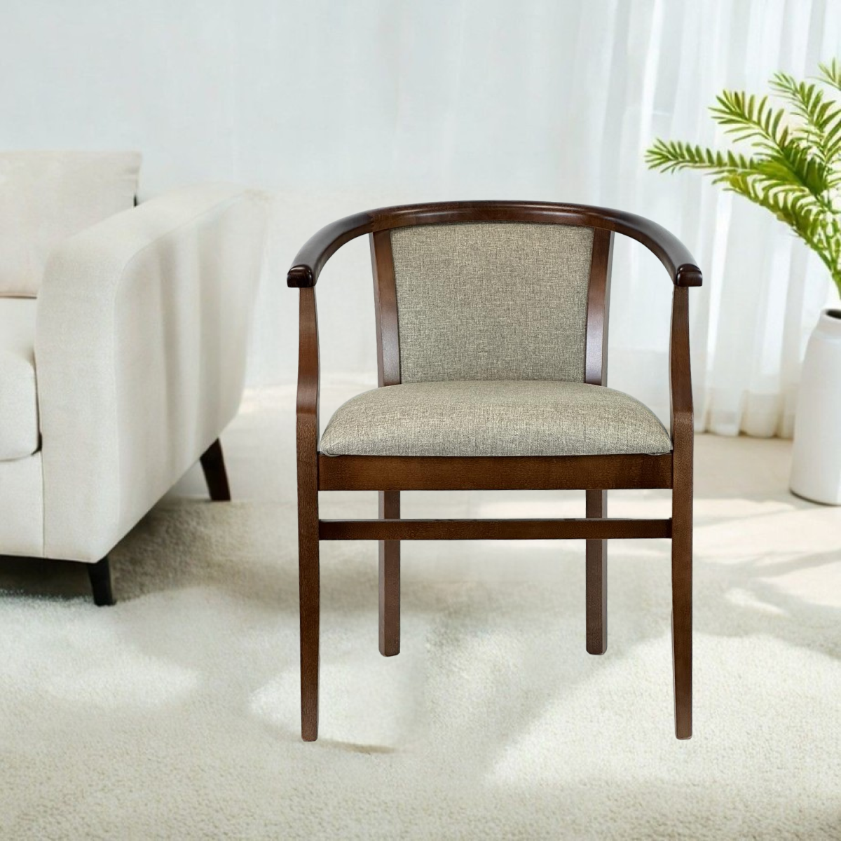 Стул с подлокотниками из массива дерева для кухни и гостиной Капри6 тон 10 рогожка Scandinavia swedish beige