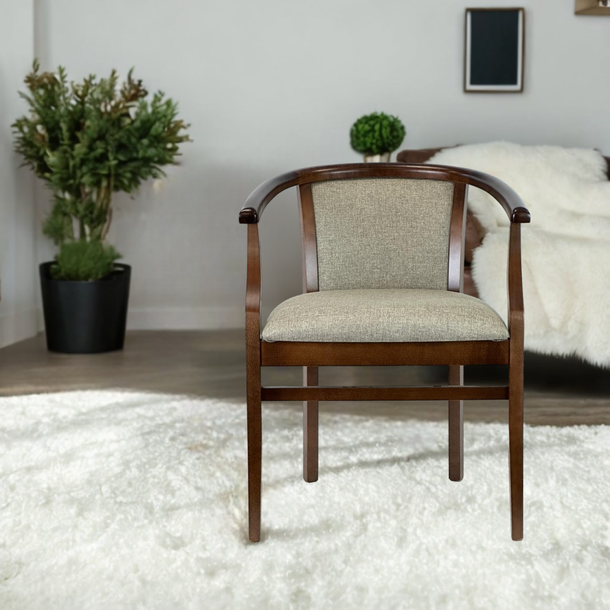 Стул с подлокотниками из массива дерева для кухни и гостиной Капри6 тон 10 рогожка Scandinavia brown wood