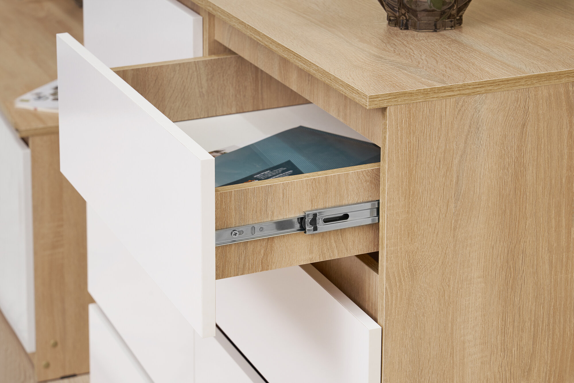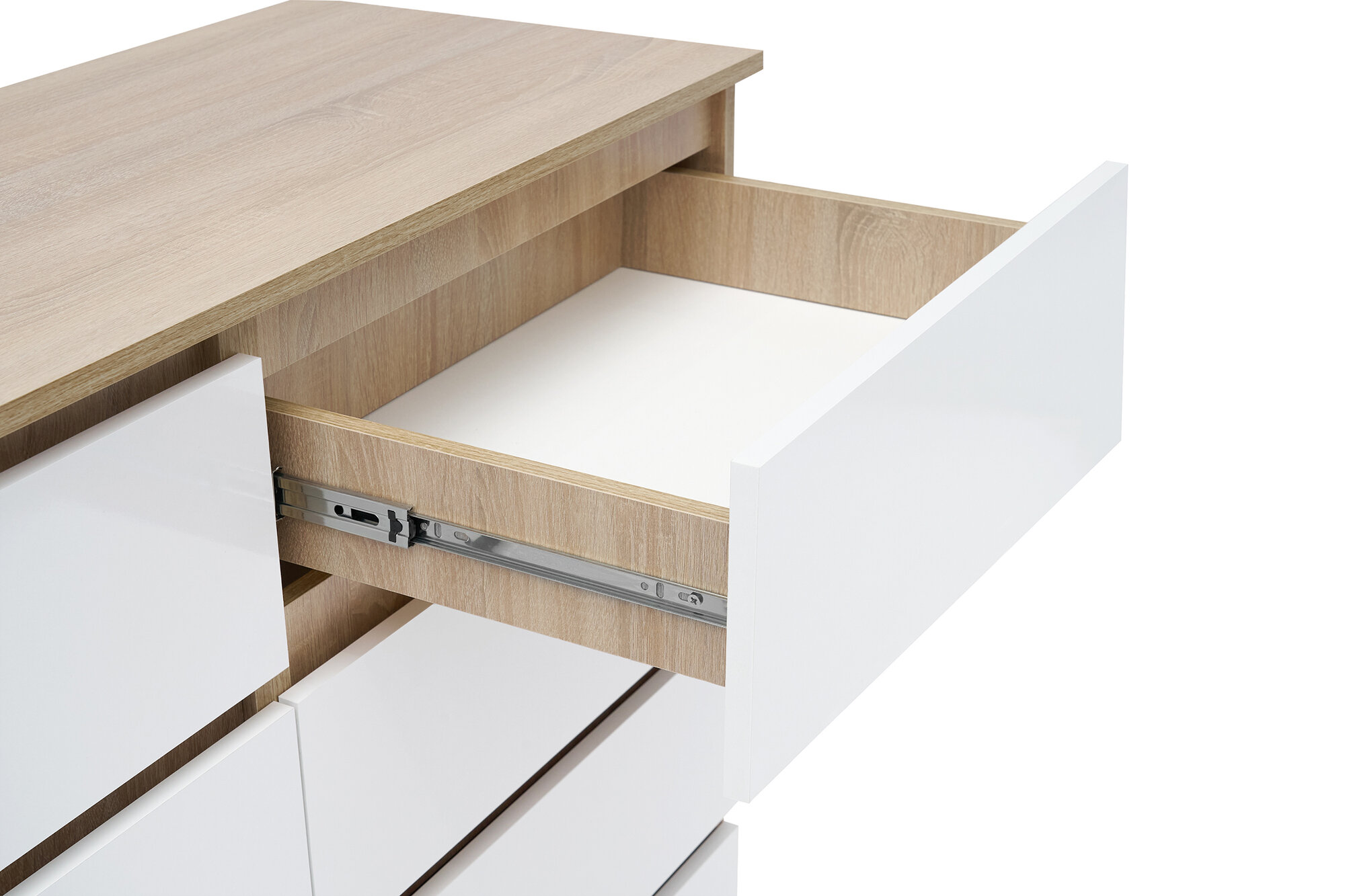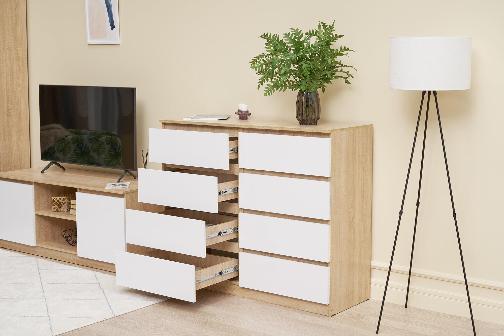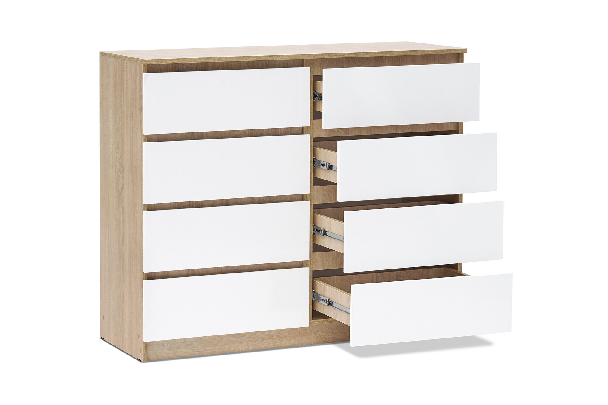 Комод нонтон Челси, 8 ящиков, белый глянец / дуб сонома 120х45х99.5 см