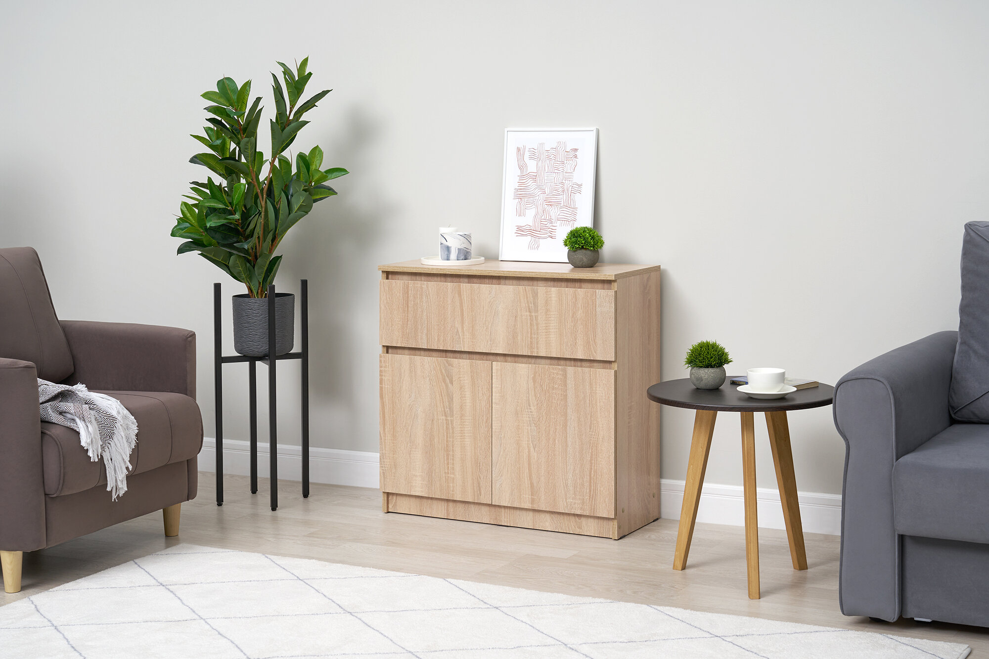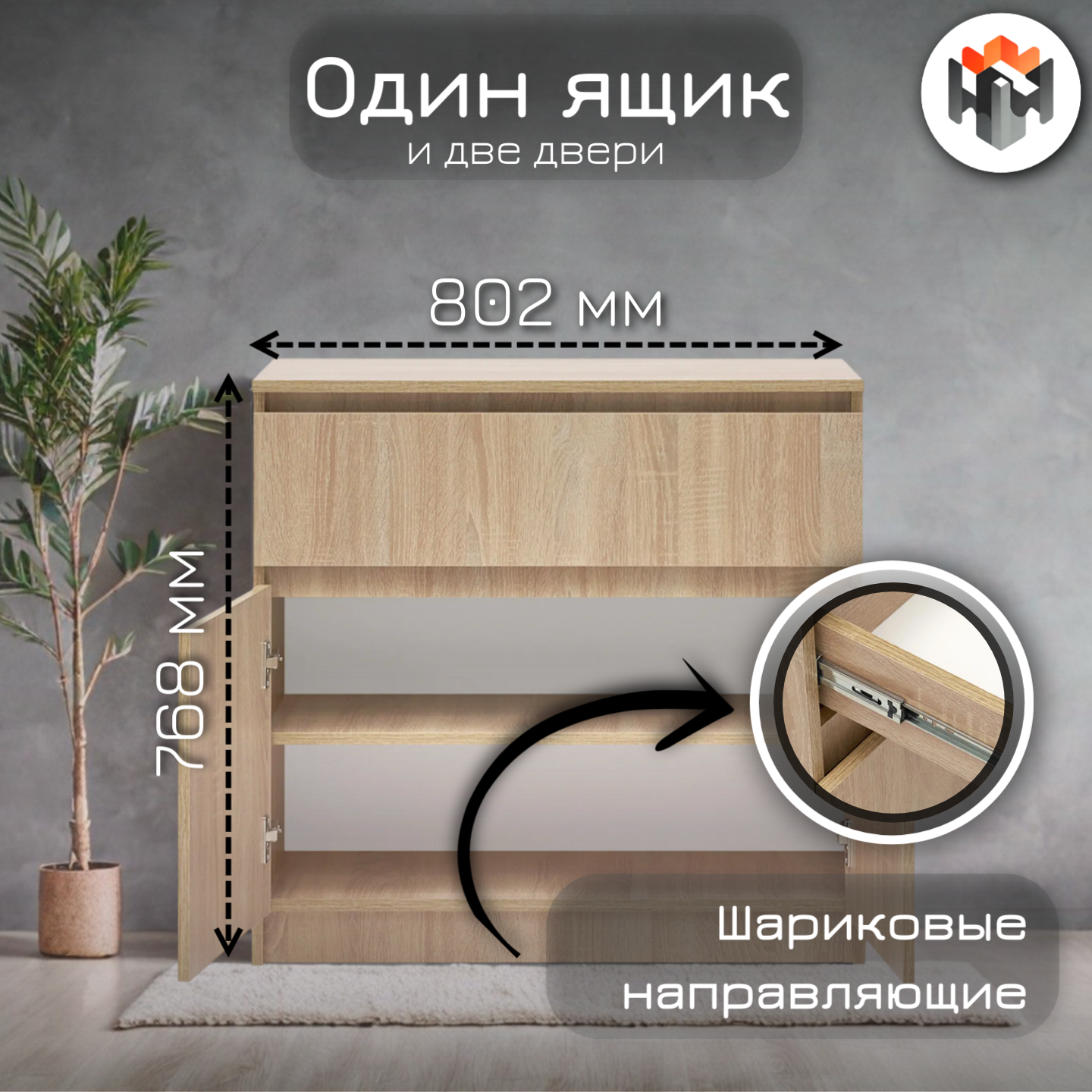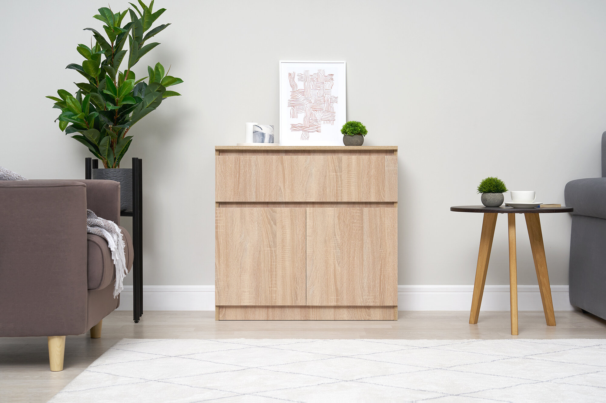 Комод Челси 800 с 2-мя дверками 1 выдвижной ящик, Дуб сонома/80,2х76,8х33 см