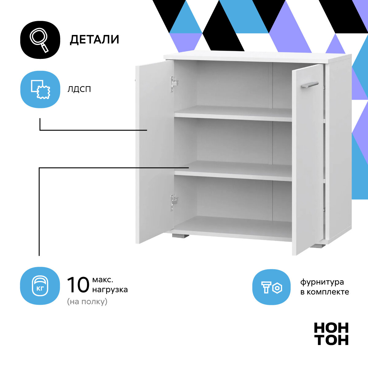 Комод FUN КД 1, комод деревянный с распашными дверцами, Белый, 690x340x735мм (ШхГхВ)