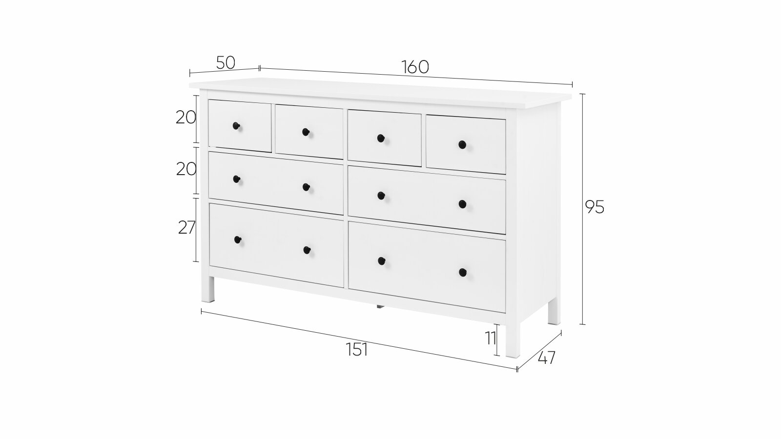 Купить Комод 8 ящиков Лузалес/Икеа белый 160*50*96 белый/полупрозрачный, массив сосны