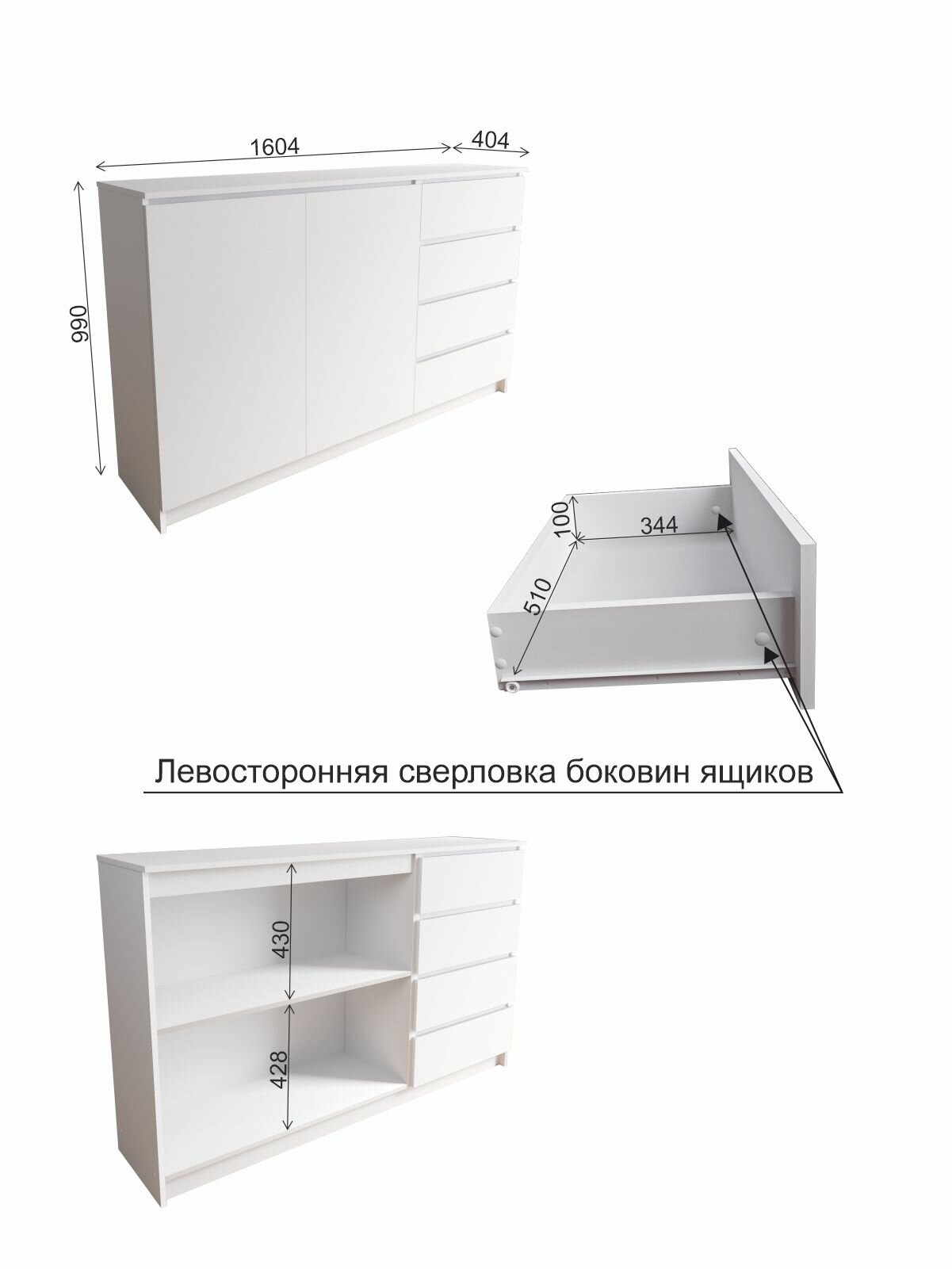 Комод Мори 1600.1 Белый