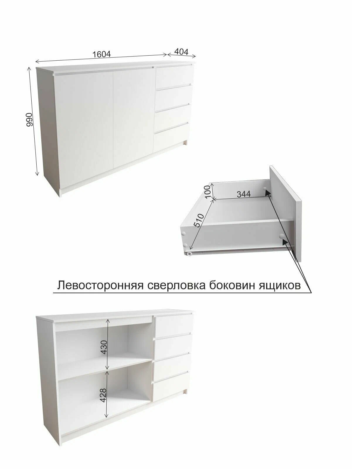 Комод-тумба МК 1600.1 модульная система Мори, белый 160.4х40.4x99 см