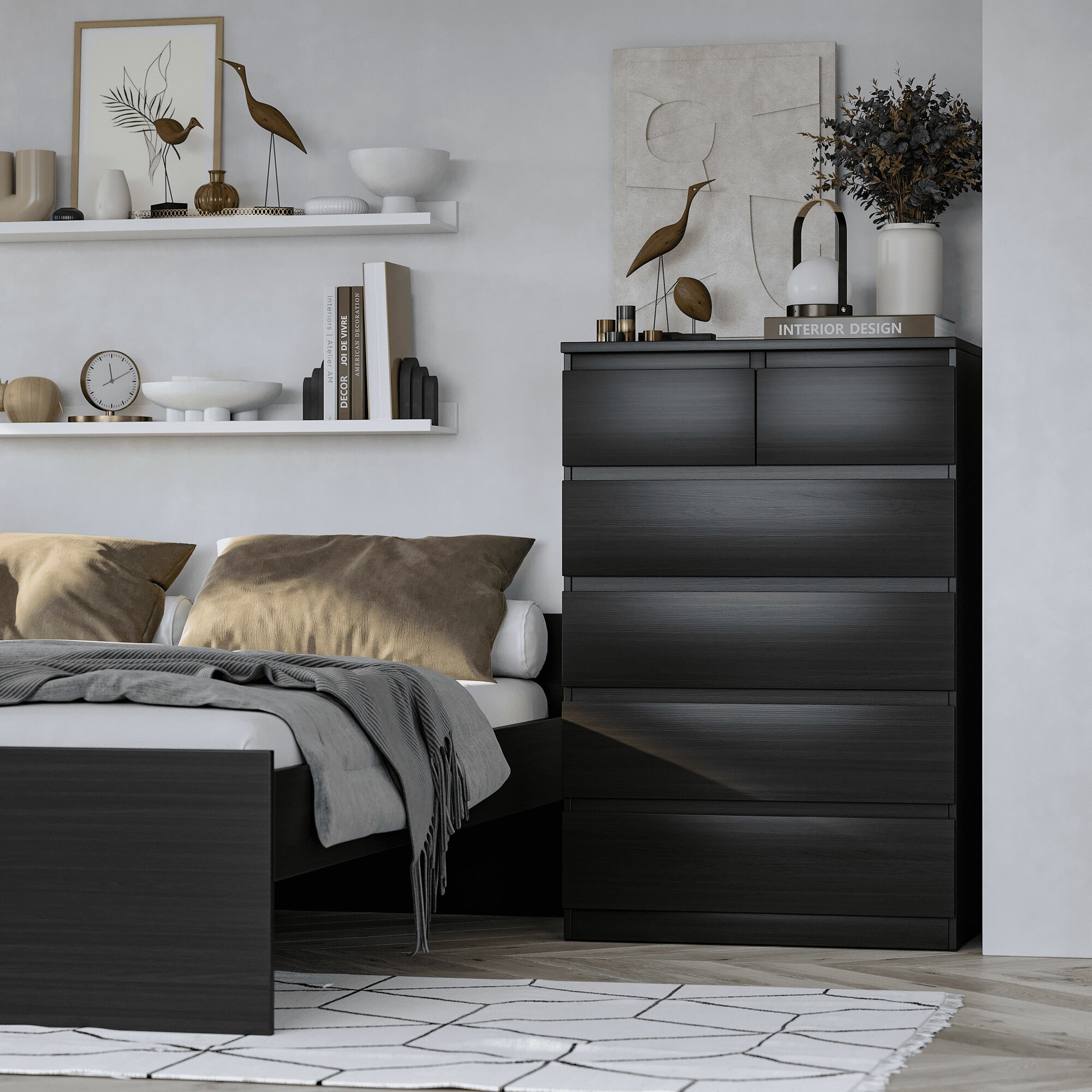 Комод ГУД ЛАКК Мальта, 4+2 ящика, с доводчиками, 80х48х121 см, ЛДСП, черно-коричневый, дуб венге