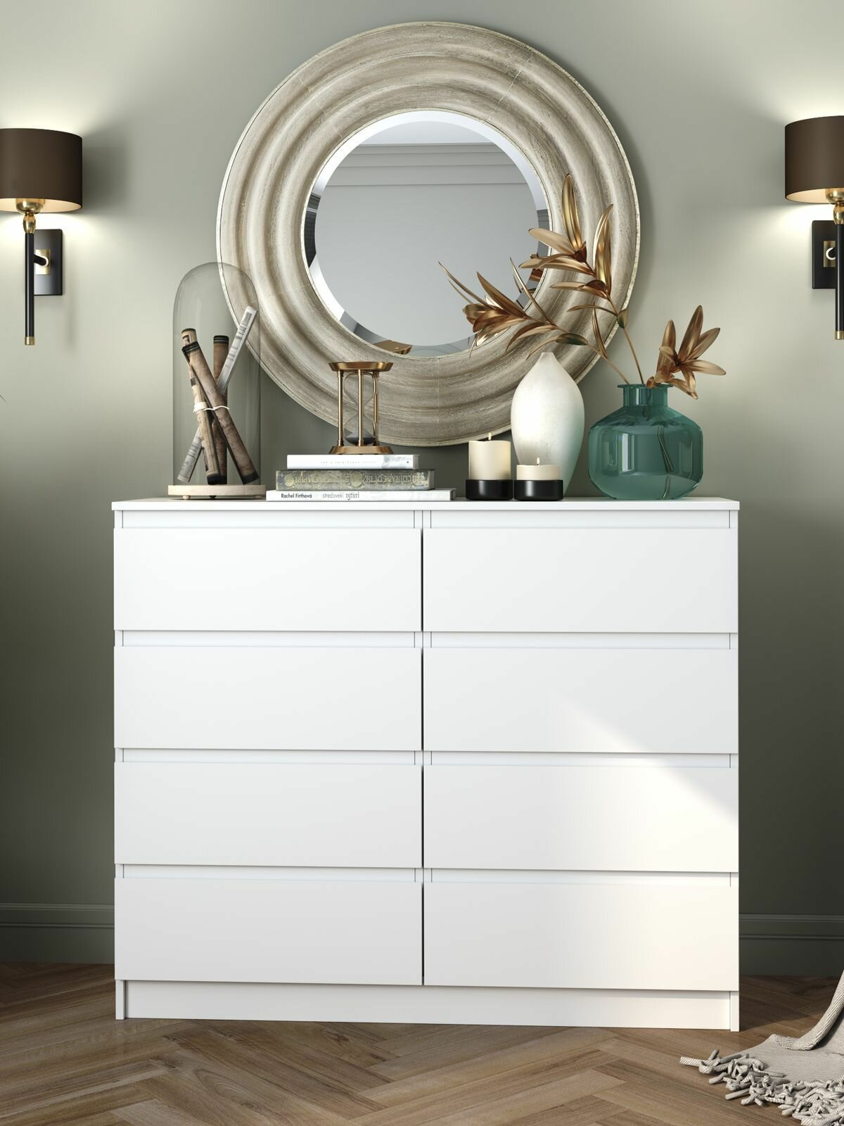 Комод ДСВ мебель Мори 1200 8 ящиков, ЛДСП, 120х99х40 см, Белый ДС00000052161