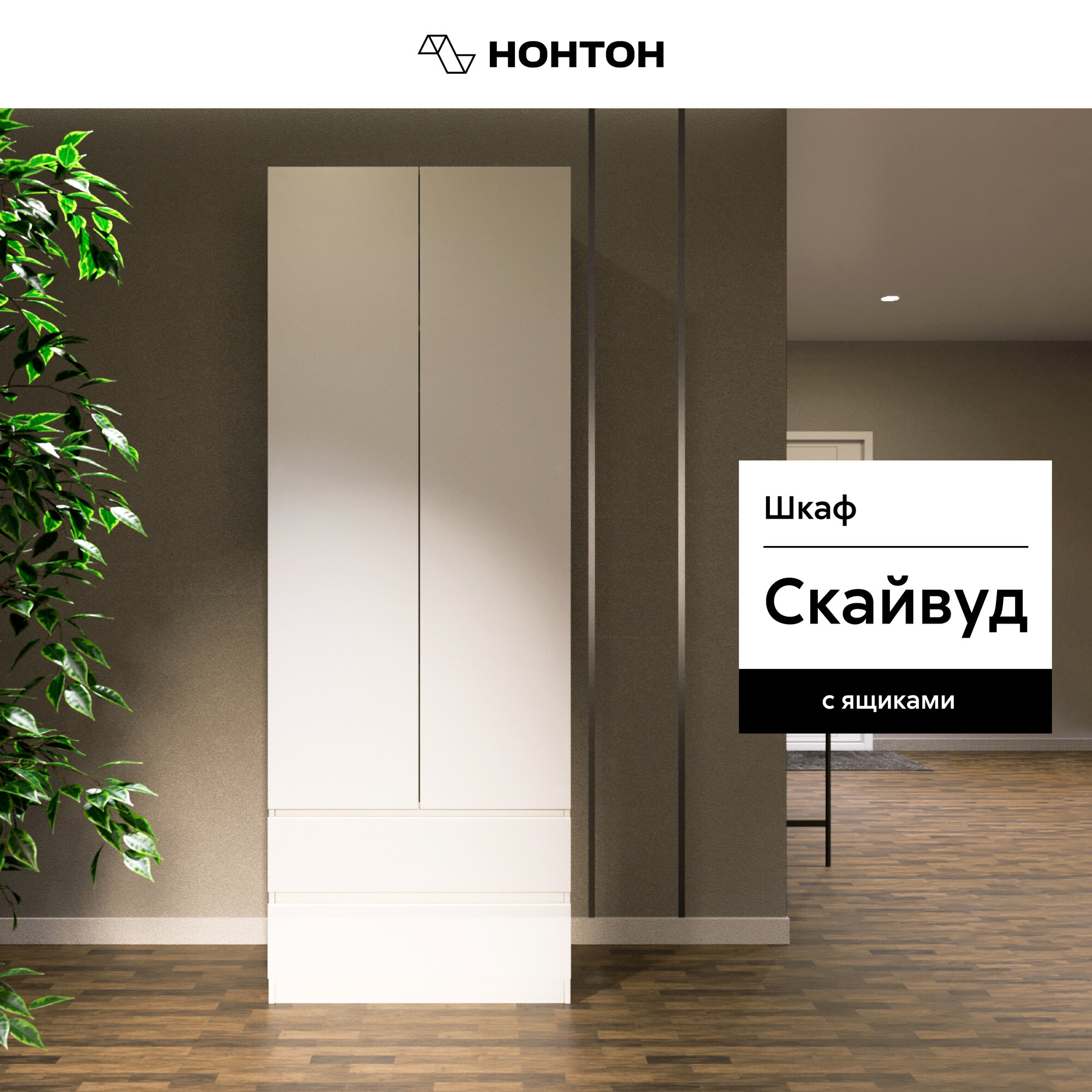 Шкаф 2-х створчатый Нонтон Скайвуд с ящиками белый текстурный 80.1x50.6x221.6 см
