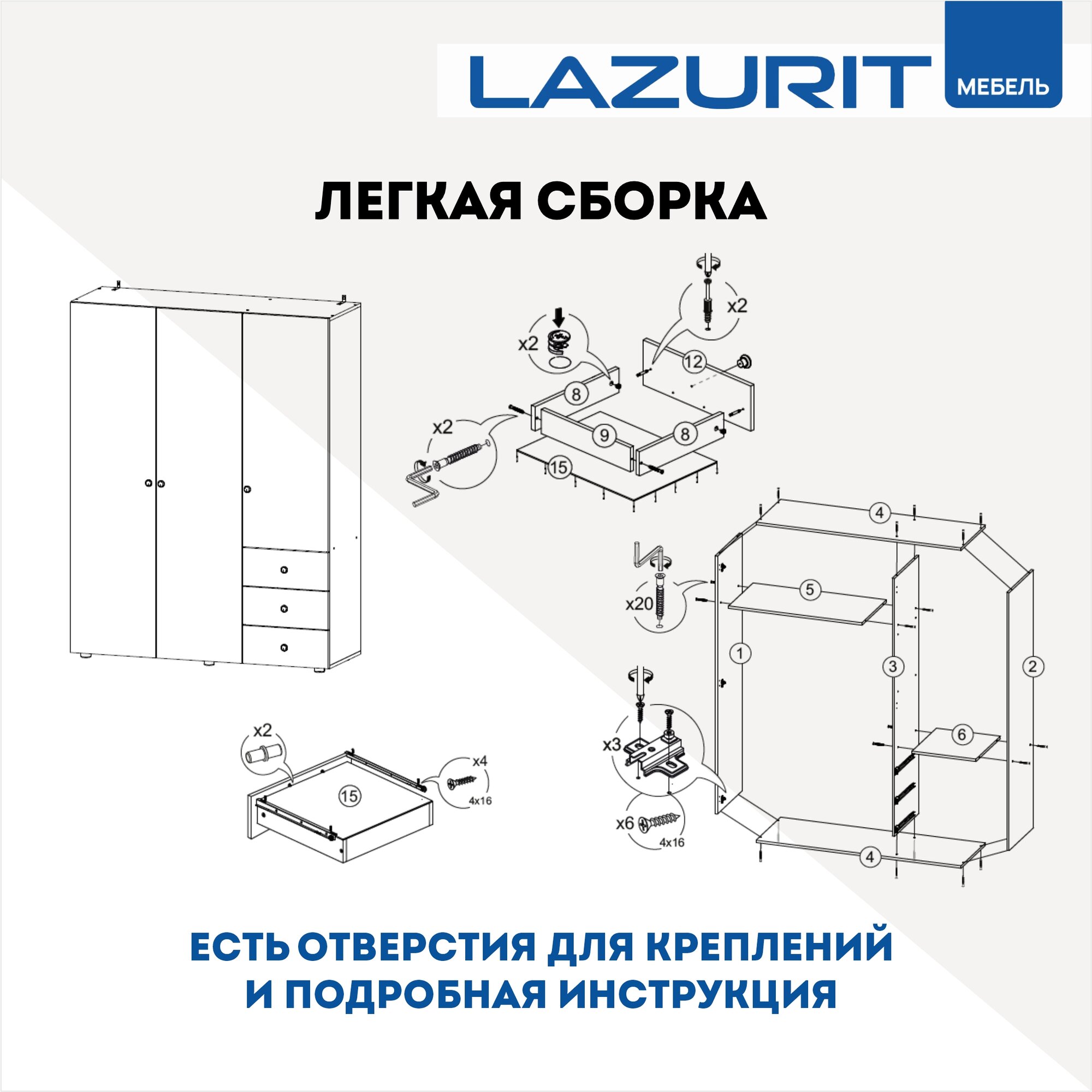 Шкаф для одежды Lazurit Эльбрус деревянный в спальню белый штанга полки ящики интересное:
