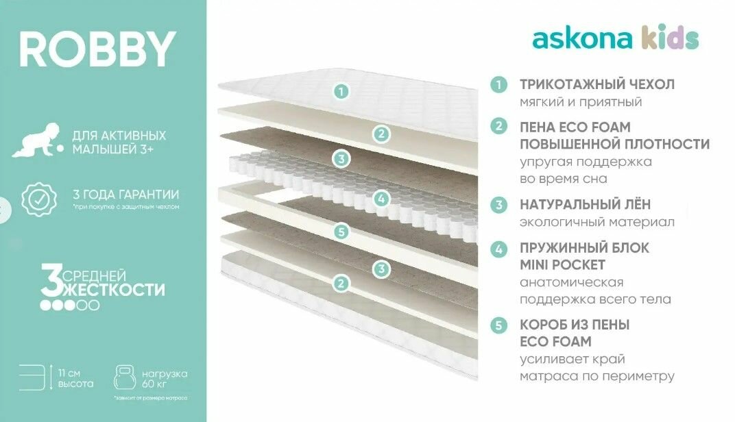 Матрас детский анатомический Askona (Аскона) KIDS Robby 70х160