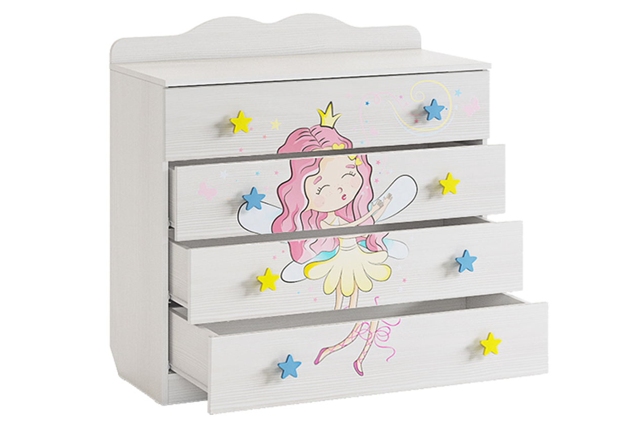 Комод в детскую комнату "Чудо", 4 ящика, цвет Белый рамух с принтерным рисунком, 90*42*92 см, Mebelson