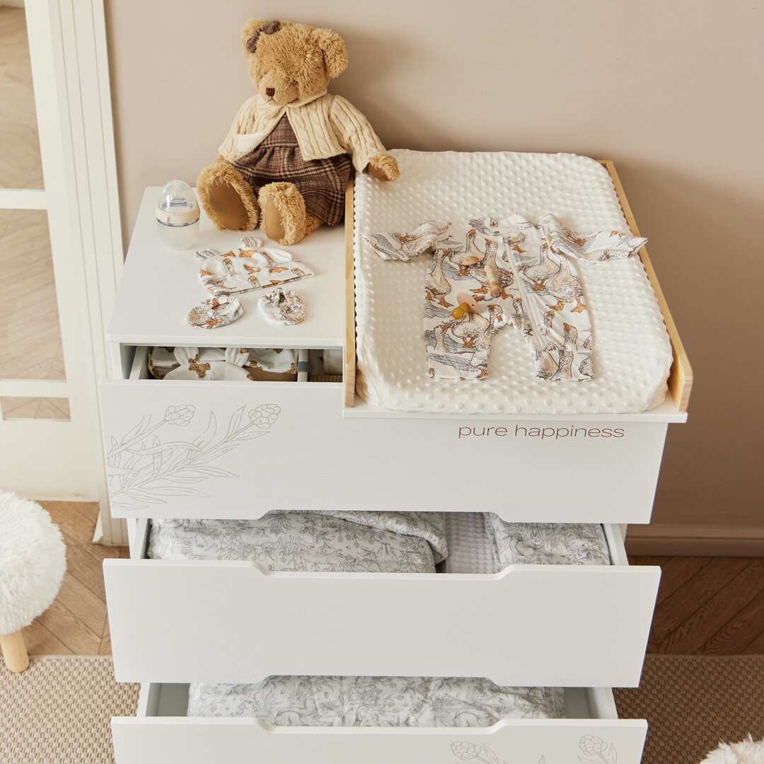 Сохранить91036, Комод FIOKI с пеленальным столиком, деревянный, ножки из массива березы, 3 ящика, 90,2х53,5х94,5 см, белый интересное: